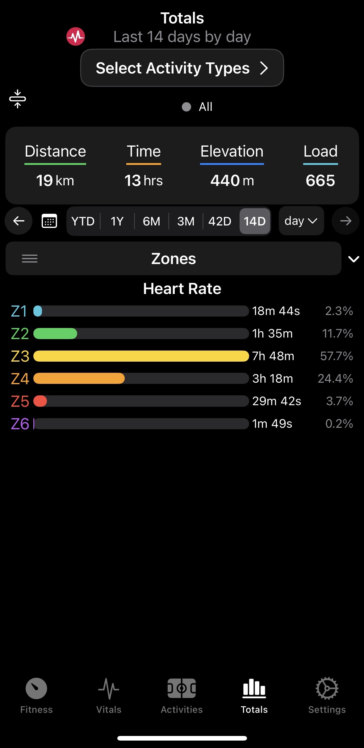 You’re right, there’s a date boundary issue there. If you use the calendar button to select the dates it should match the website. The date handling for the range selectors has been… loose since the start. For selecting date ranges for data graphing purposes, and when aggregating data by week or month it’s not too important, but it’s more noticeable when totaling values for a more precise range. The values behind the horizontal pickers are actually 14, 42, 90, 180, and 365 days. That value is subtracted from today to set the date to select from. Today minus 1 would include today and yesterday, so 2 days of data. If intervals.icu counts differently that’s an easy adjustment so the app matches. YTD gets a special value that tells the logic to go back to January 1st of the current year. A WTD option would be handled similarly.