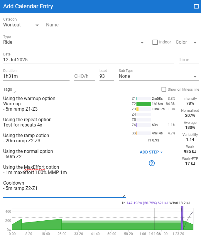 Once the syntax format is understood, it’s very easy to setup a workout.