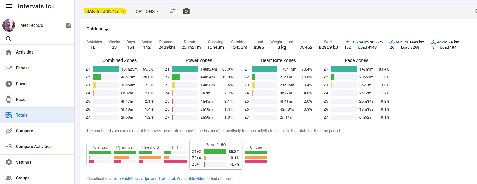 - The moving time of the activities done and their load