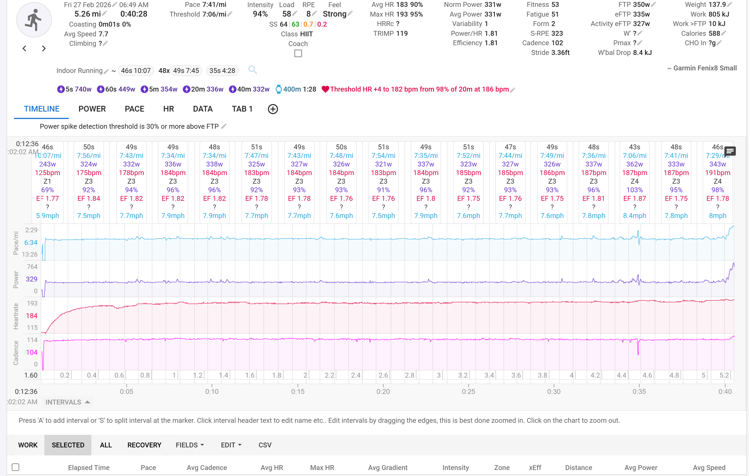 When I’ve tried doing this, it seems to only operate on the power data stream (if power selected selected) but not the distance per interval or pace per interval (if speed selected).