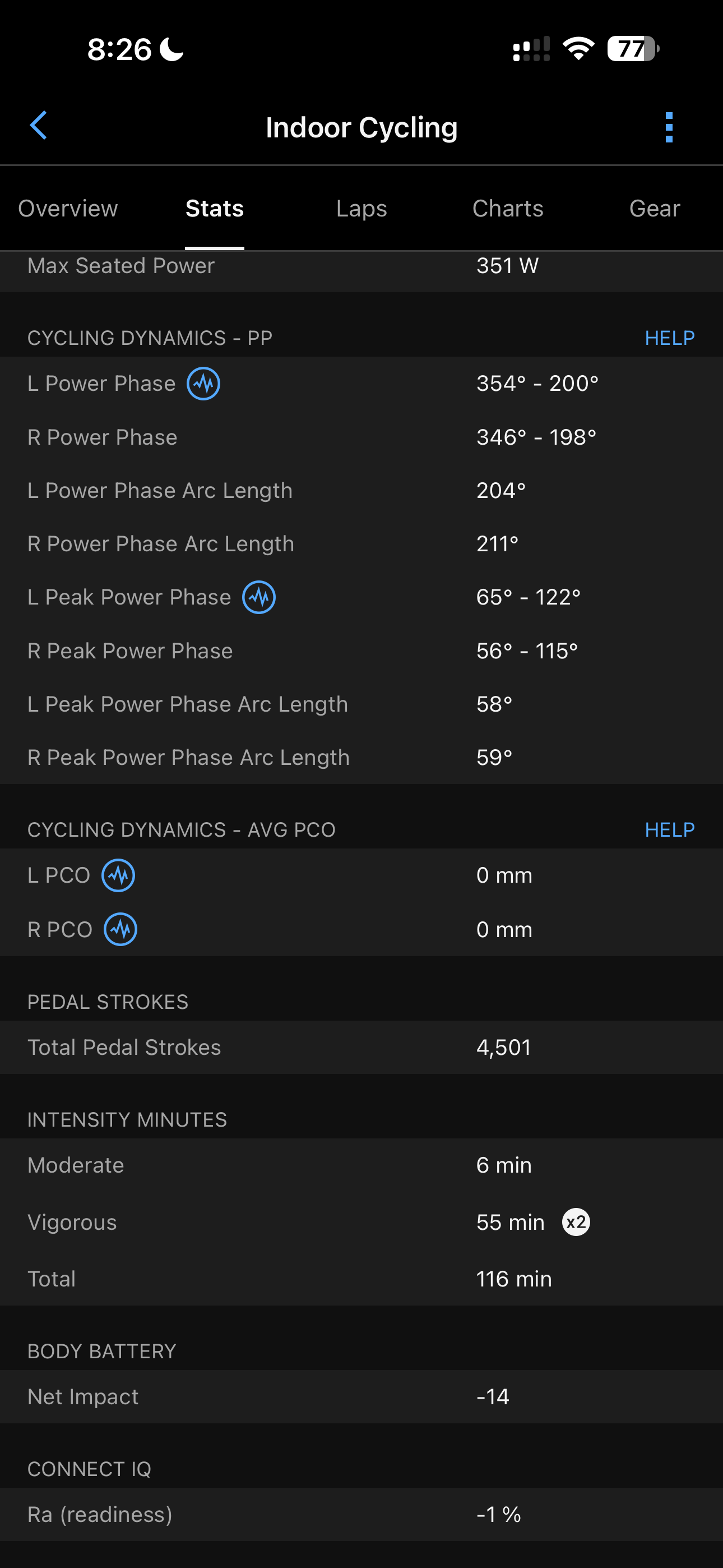 Yeah, thatâs the same scenario where I would get artifacts; after interval workouts and sometimes when power/HR is steady.