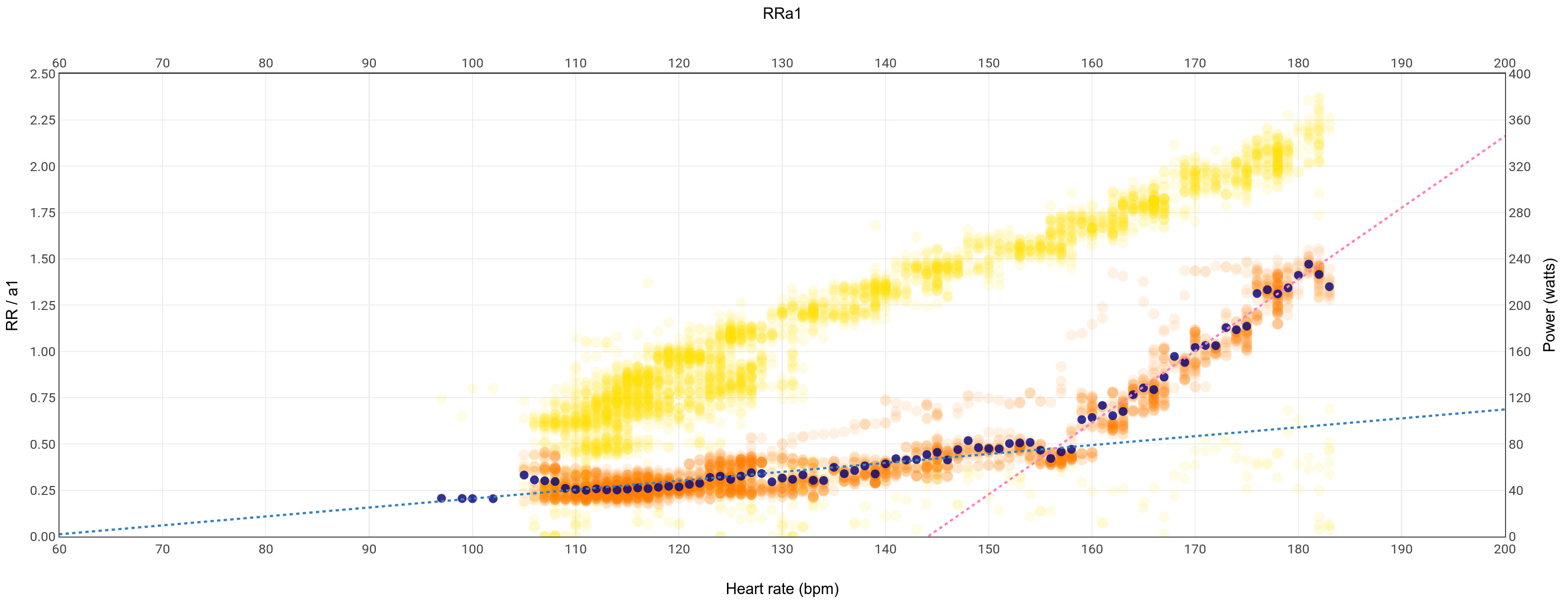 Got my Tymewear result now, and my BP (Z3 top) seems to line up ~exactly with the “acceleration point” (where the steeper red line crosses the less steep blue one) in my Intervals RRa1 graph. Is that expected?