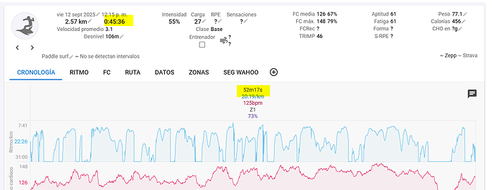 This is the first time I’ve logged a water sport with my Balance 2 (Zepp), specifically paddleboarding. Although you can see in the screenshot that the activity lasts 52 minutes, the activity summary only shows 45 minutes. Why is this?
