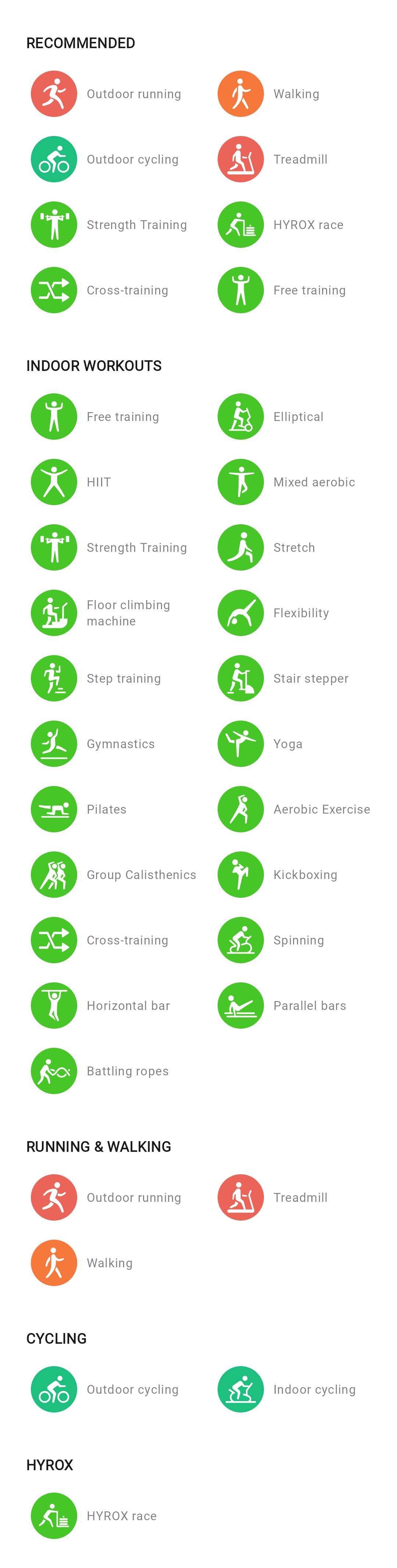 I wanted to ask if, once paired with Zepp, the Helio Band will also show the types of sports available in the Start Activity section. Unfortunately, the Zepp app only offers the following in the Start Activity section: running, cycling, walking, and treadmill.