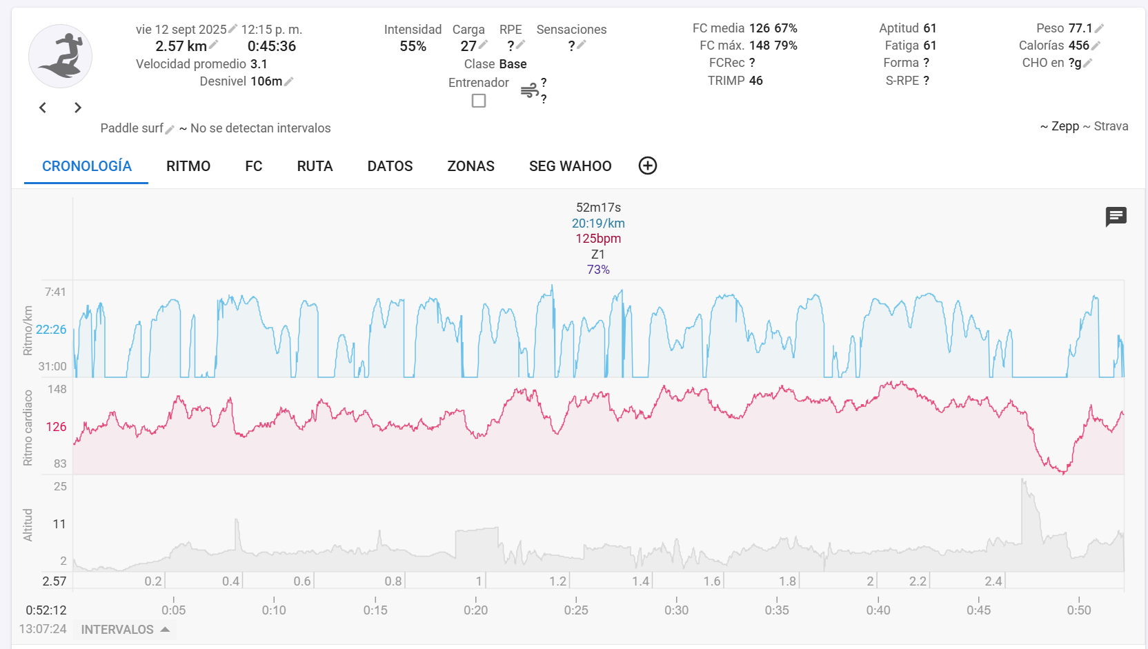 I have the activity history in Zepp (app) and Strava, and they show the correct duration of 52 minutes.