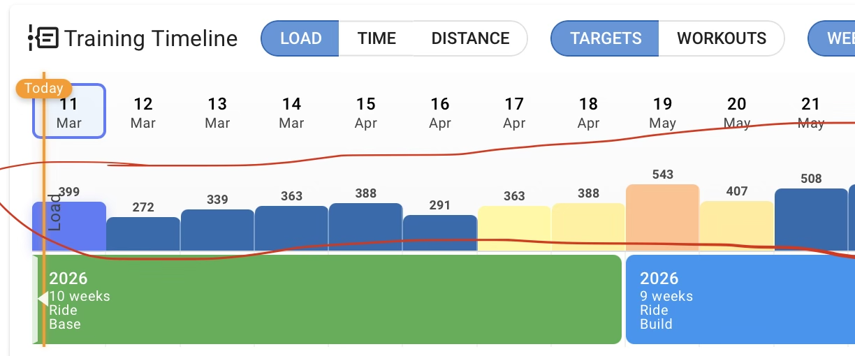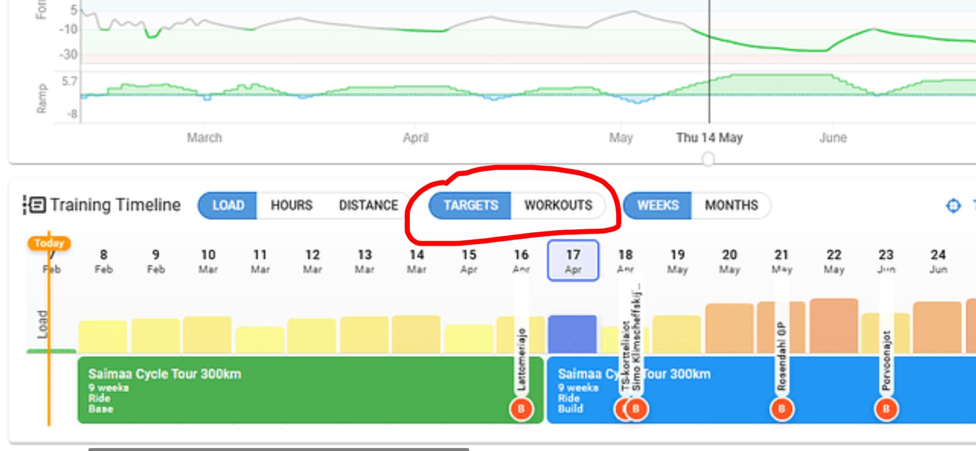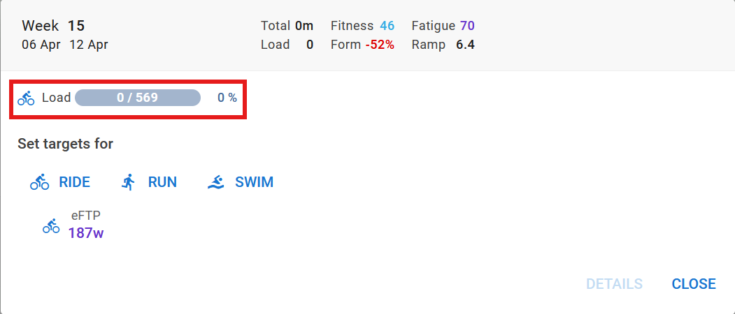 If you flick between targets and workouts, you see if the totals are close, but it’s a fiddly way to compare. It would be good to see if the planned workouts hit the TSS targets for the week.