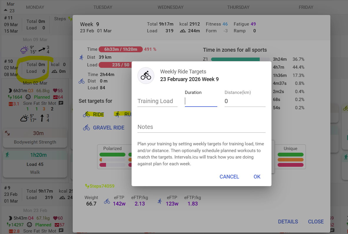 I ask, because currently target is added to the weekly load, even though nothing is planned. You’ll see this in a few discussions.