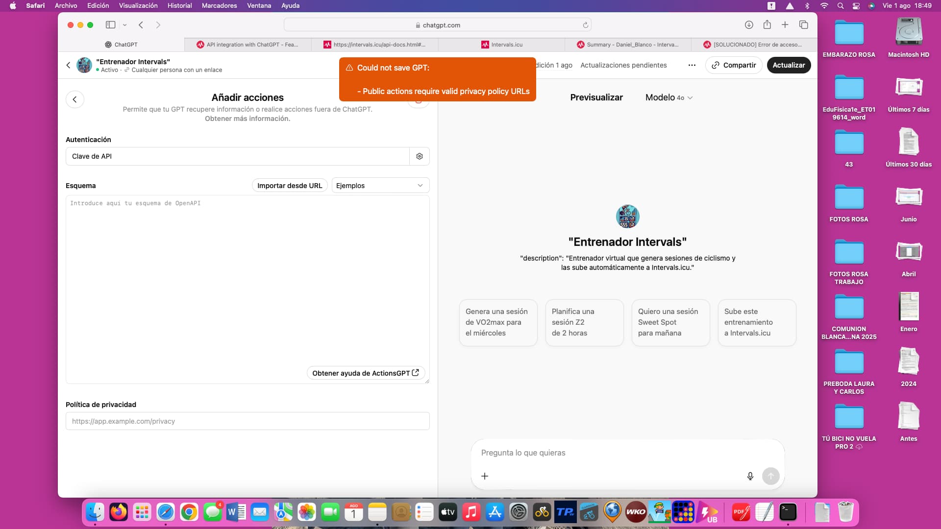 Buenos dias . Yo he conseguido que Claude me lea mi estado de salud de intervals, pero no he podido hacer para que pueda escribir y mandar entrenamiento o planes .