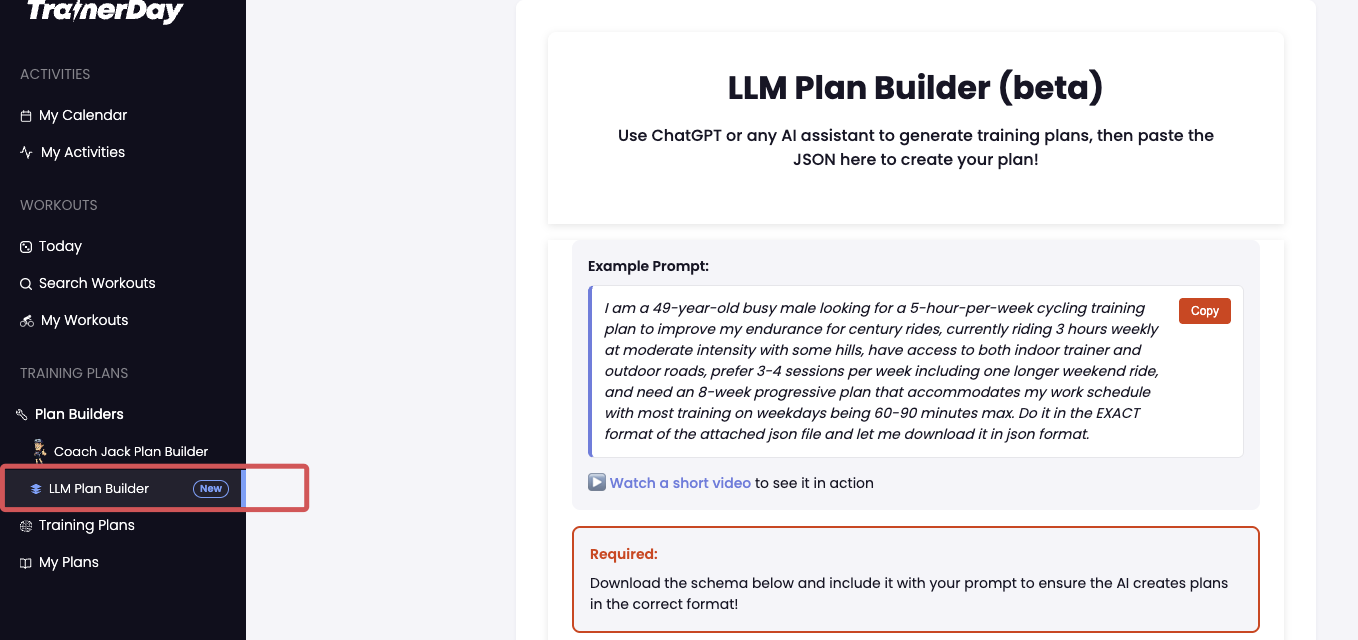 We focused more on making it as easy as possible over as flexible as possible. So it’s always 8 weeks but you can ask AI (LLM) to make as many 8 week blocks as you want. Also it only allows you to specify 3 specific workouts a week but you could do that 2 times if you wanted full control over 6 days a week. And just click send to plan 2 times and send to intervals 2 times.