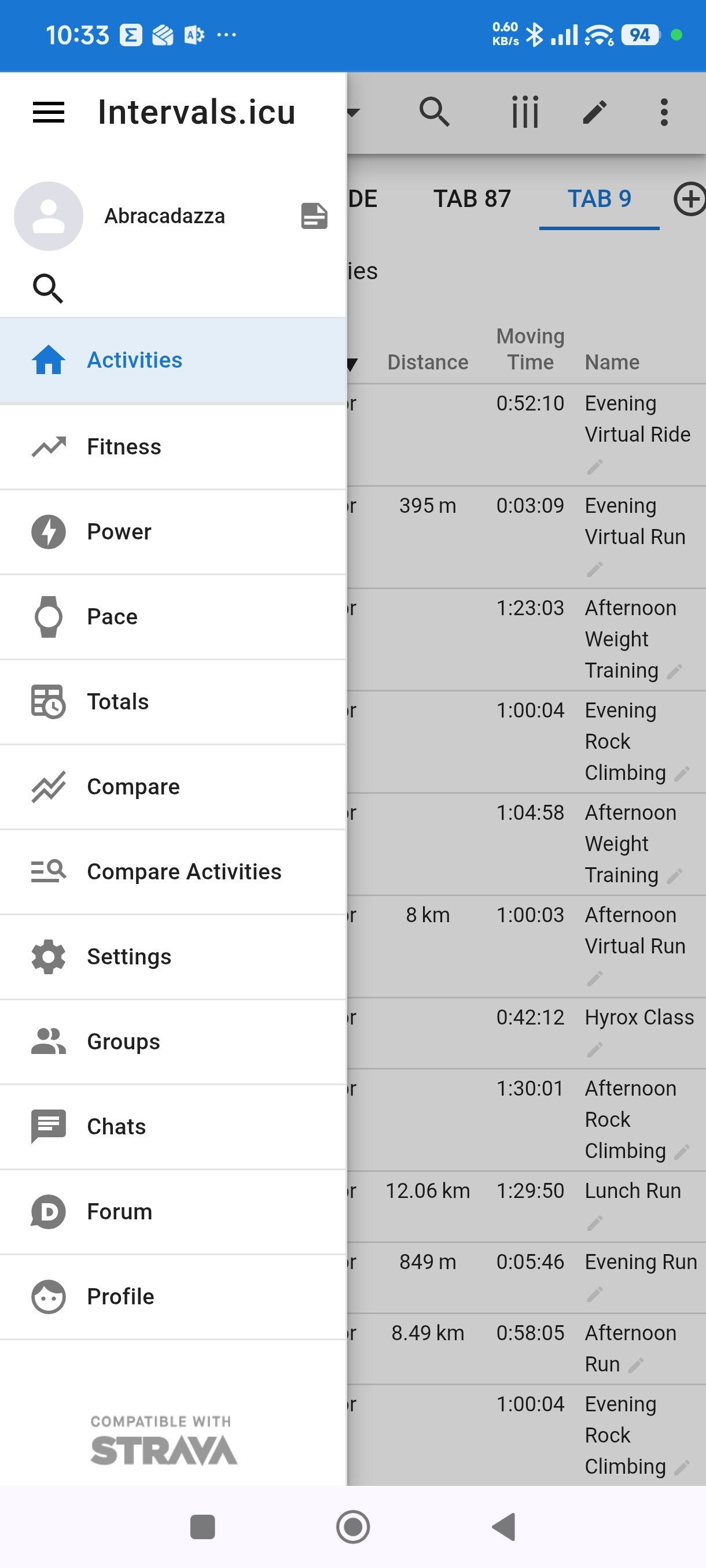 Activities columns. I set my own columns, Time, distance, load etc . However I’d say about 20% of the time, when I open the app the columns default back to the original settings.. power, FTP etc..none of which I use. I then have to log off, close and reopen and turn the phone landscape to get the columns back to my settings..