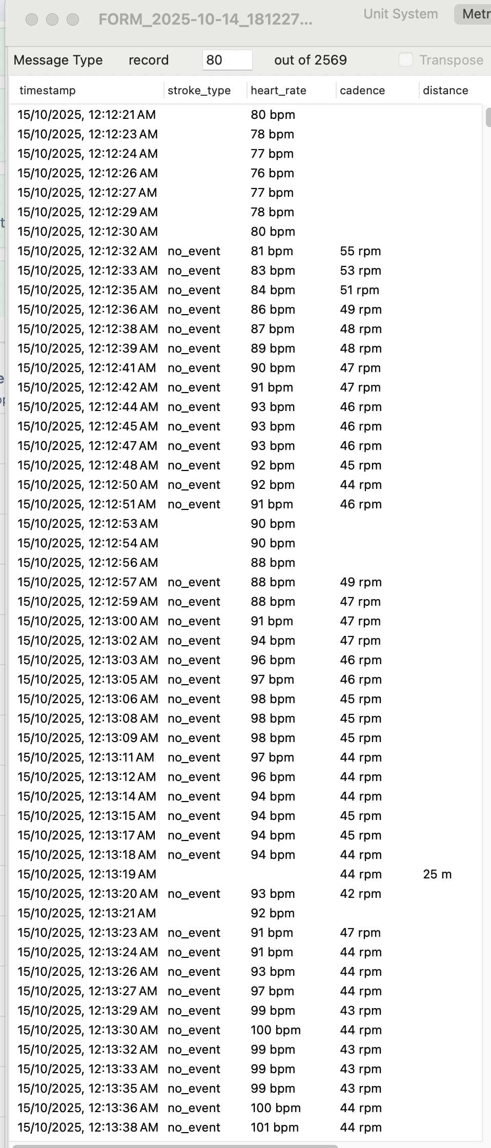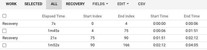 then 12:12:32 → 12:14:17 (1m45s) as the “swim” section as there is cadence data (dropouts up to 3+ secs are handled by backfilling the data) etc etc..