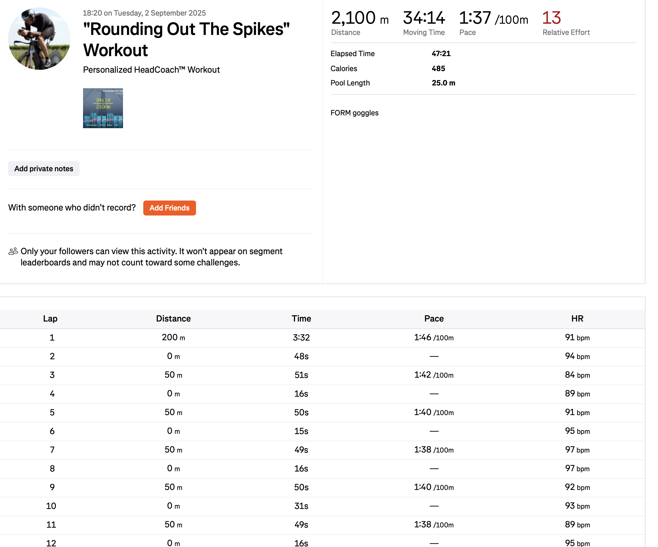 Example activity (2,100 m, 2 Sept 2025):