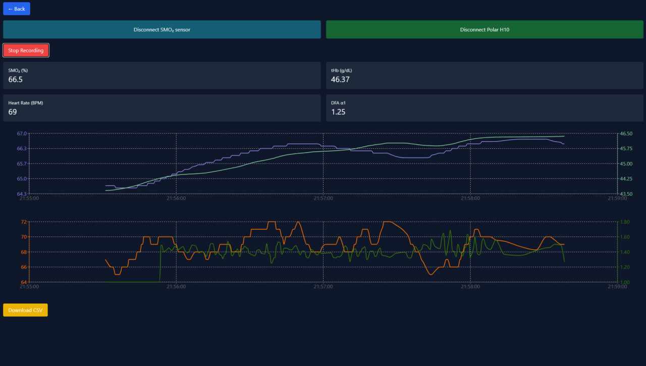 I present you (in alpha phase) my CardioMetrics application, the idea was to have an alphaHRV Desktop, in this case we took advantage and added the electrocardiogram and also the SMO2 measurement. Everything can be saved in a csv on demand for later analysis. It is in alpha phase and has not yet been released for testing.