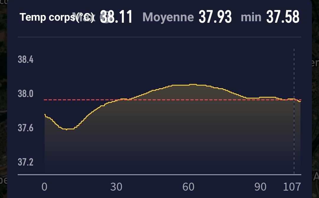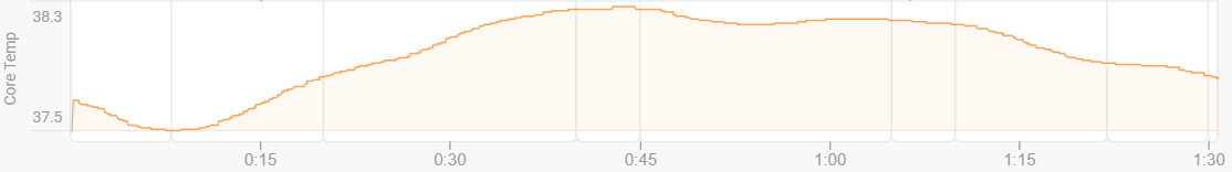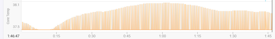 I have a CORE 2 Thermal Sensor and I use it with a Coros Pace Pro (for running) and a Coros DURA (Cycling). In intervals I can see the core temp graph but the curve is strange and looks like this :