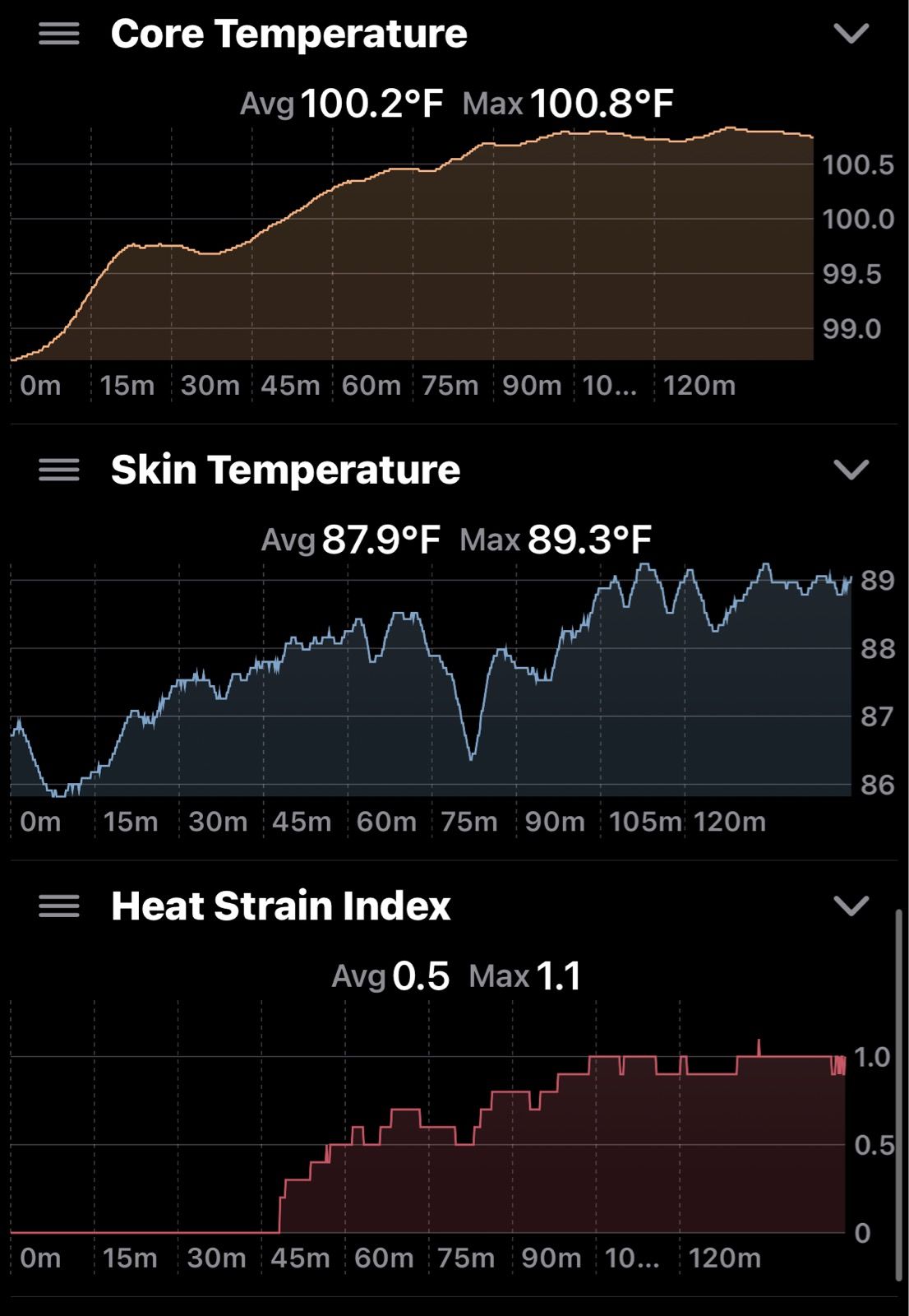 It seems it only records every 10s on Coros. I have changed importer to fill in the nulls from the last good value for up to 30s for “heat_strain_index”, “core_temperature”, “skin_temperature” and “temp”. Will deploy Monday AM.