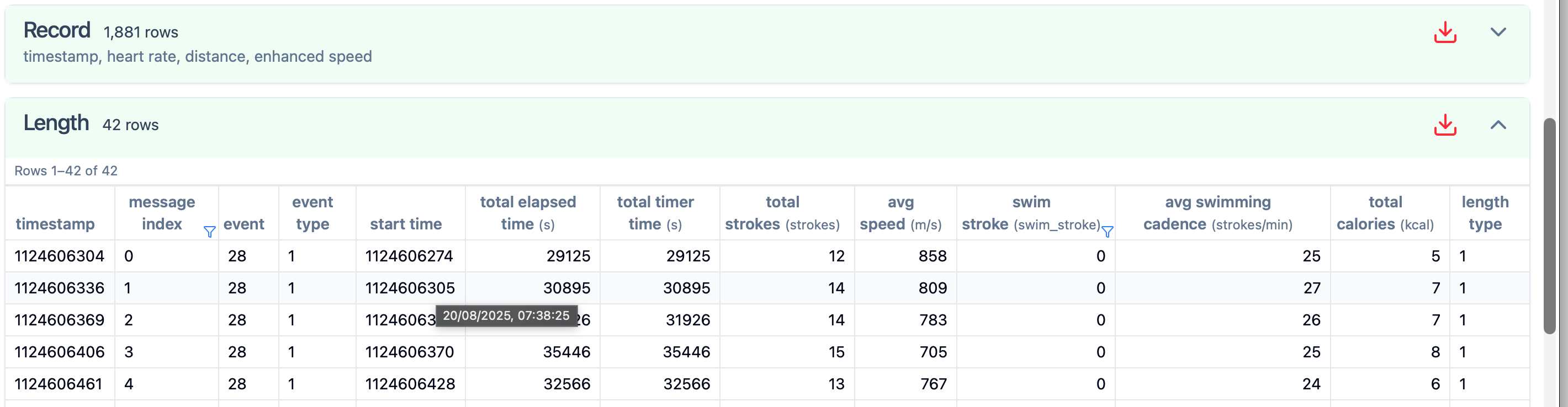 using fit file viewer I can see that a lot of the data is stored within Length (as in length of pool).