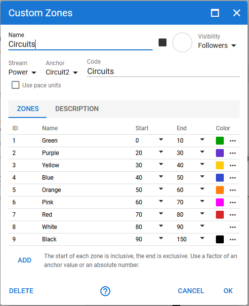 The current workaround is to set FTP to mimic the custom zones and have a custom field be the range. However, this causes an issue if the number of zones with FTP don’t align properly (FTP maxes at 7 zones). It would be great to be able to ignore stream mappings and just have an absolute display if no stream is set, that only relies on the custom zones