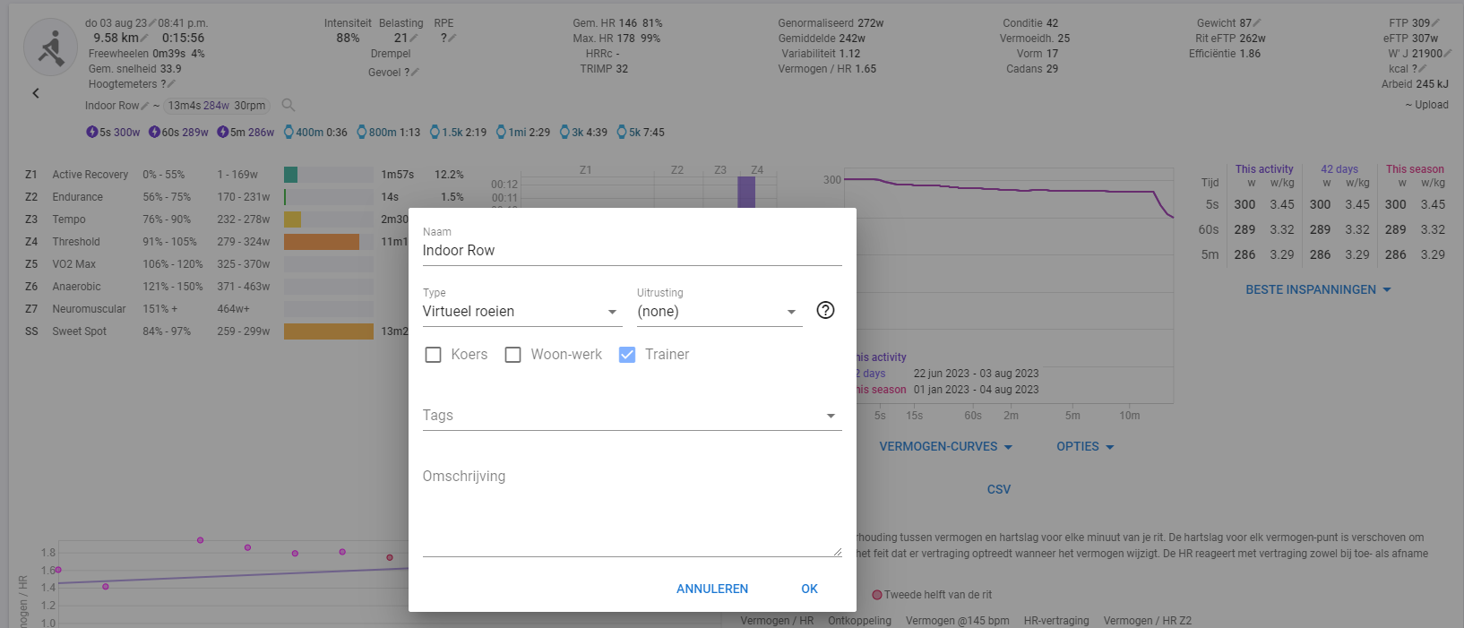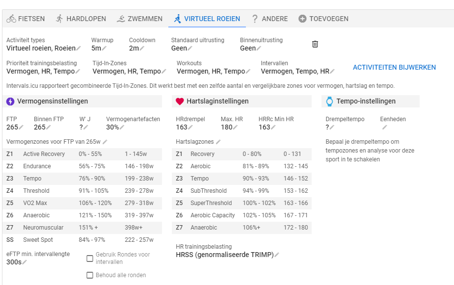 I would really like to have the zones and training load correct, there is quite a gap between cycling ftp and rowing ftp.