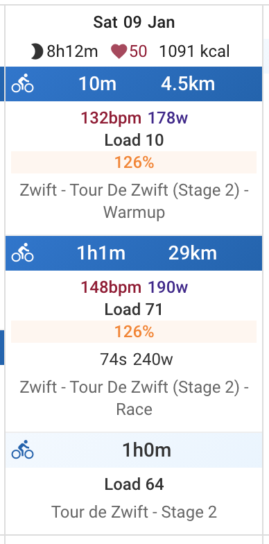 The daily percentage (TSS vs plan) is a bit counterintuitive: for each activity, it shows the daily total vs plan. Ex: