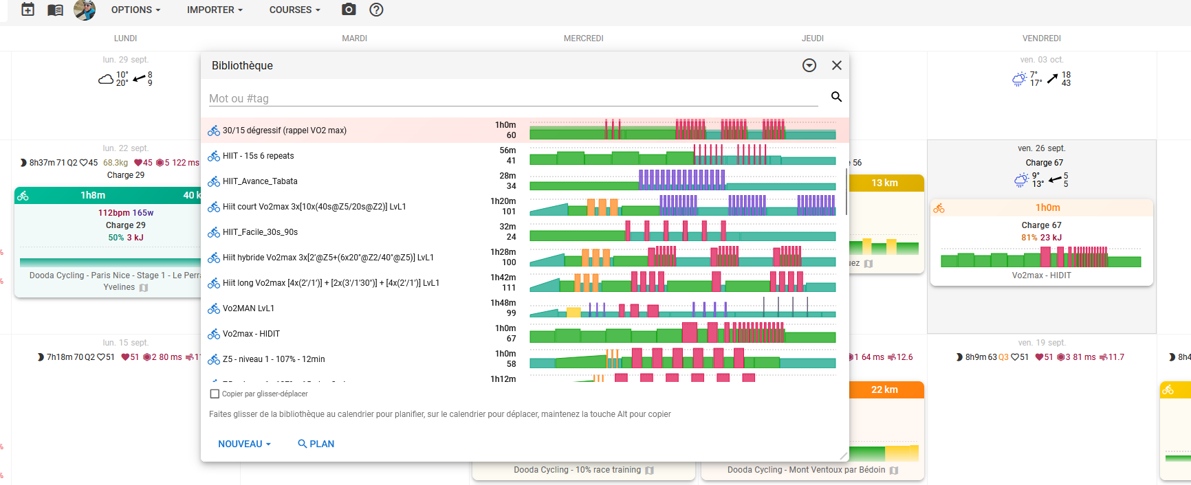 - Load intervals via Calendar (Intervals.icu) or from the Library.