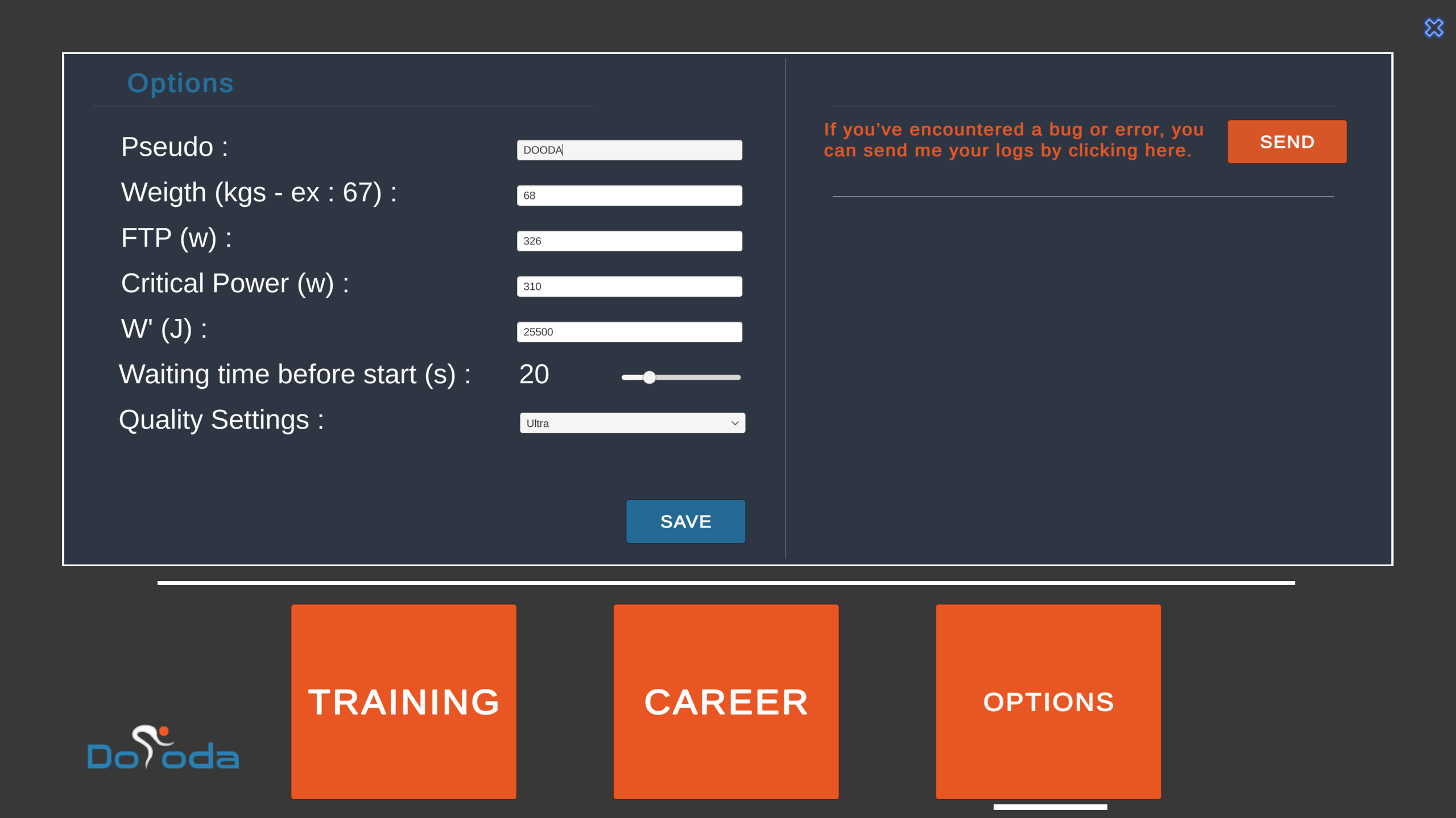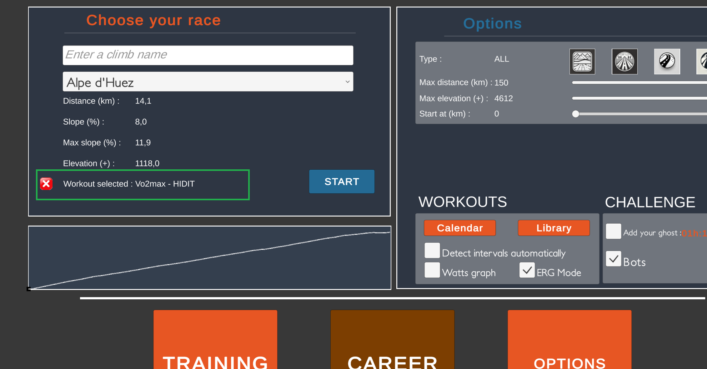 - In the software options, set up your FTP if you want to use Career mode or structured workouts.