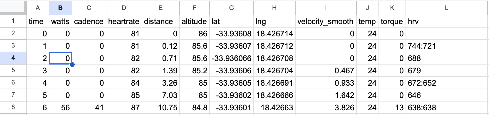 Do File → Download and choose .csv to get a file to upload to Intervals.icu.
