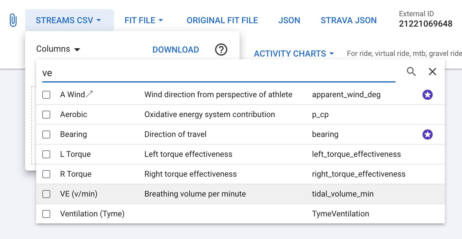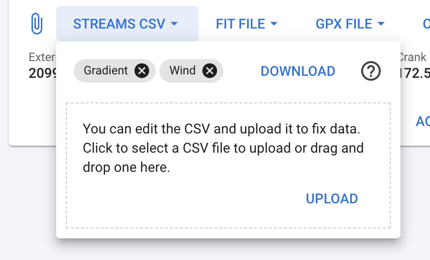 We have added a column selector. The default is all the non-computed columns and torque. Computed columns (e.g. torque, gradient) are ignored on upload.
