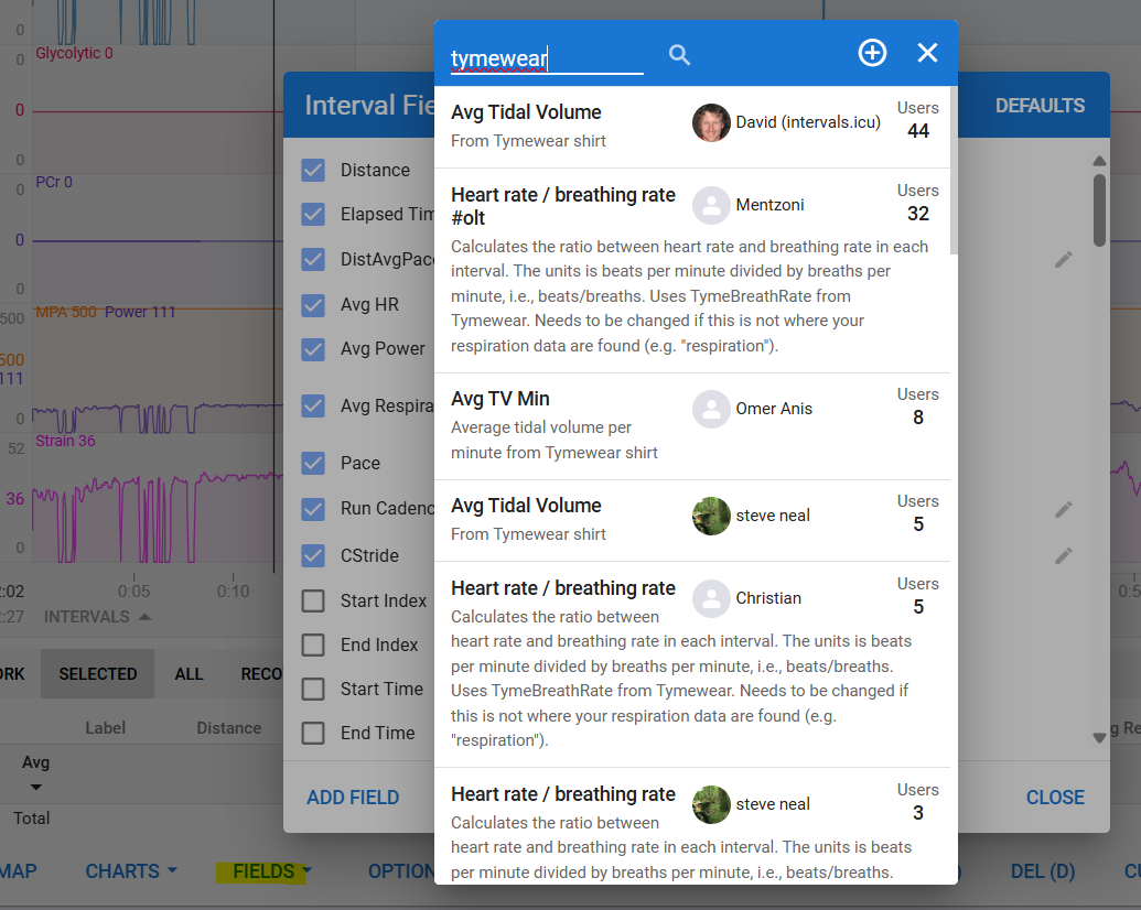 Is there any reason why I don’t get the Tymewear fields shown when I click “Fields” in that view.? They are enabled in custom streams and I can access them elsewhere