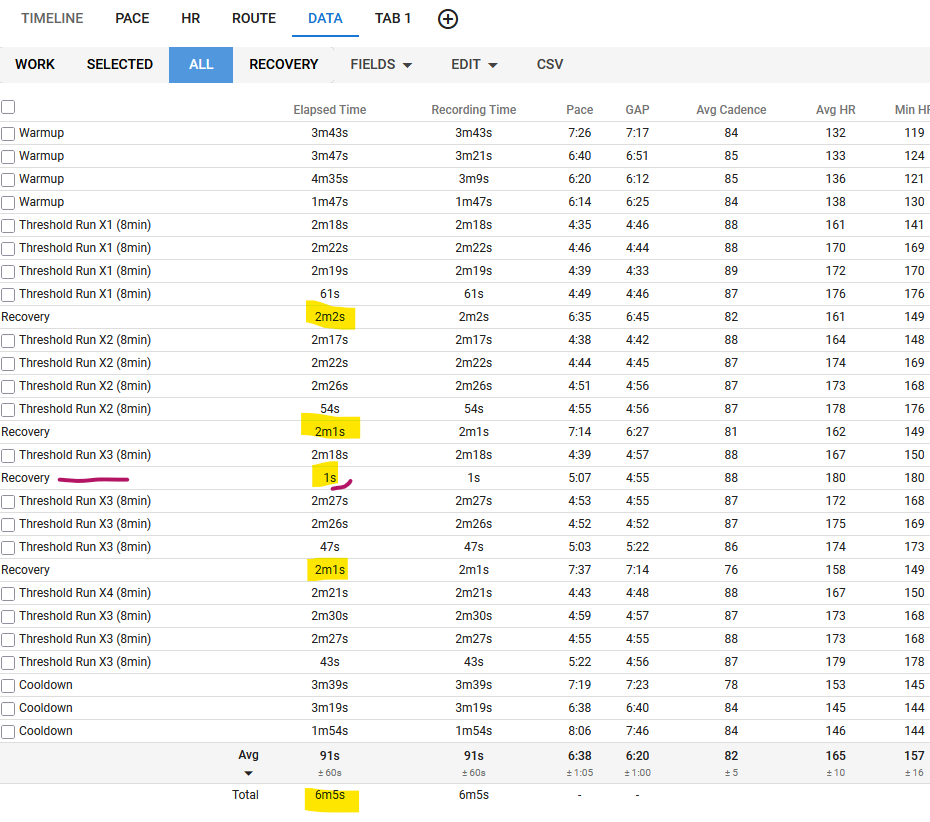 Interesting remark regarding the ‘All’ selection where avg and total show results for the recovery intervals. I never noticed that before, but it does look odd. @david or @eva ?