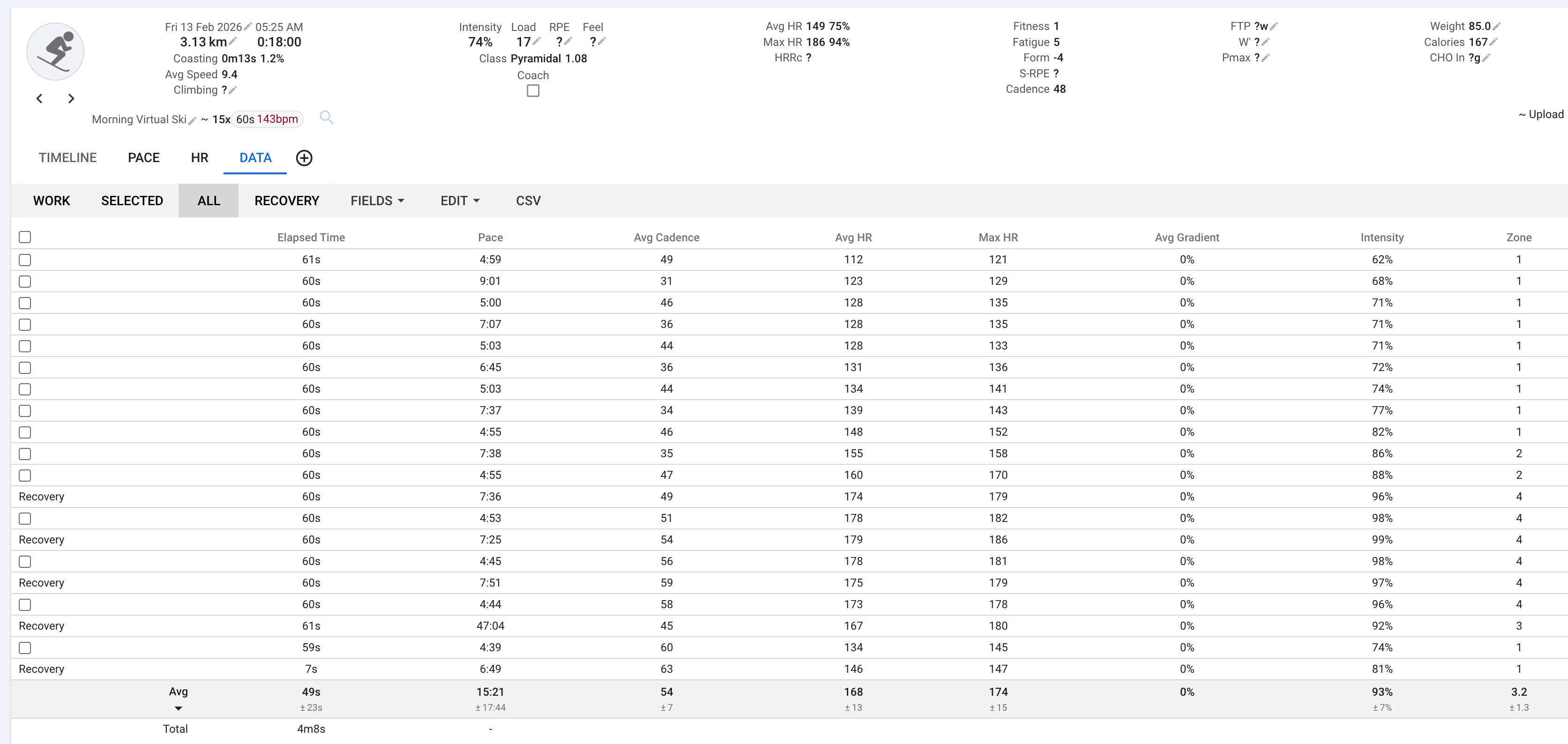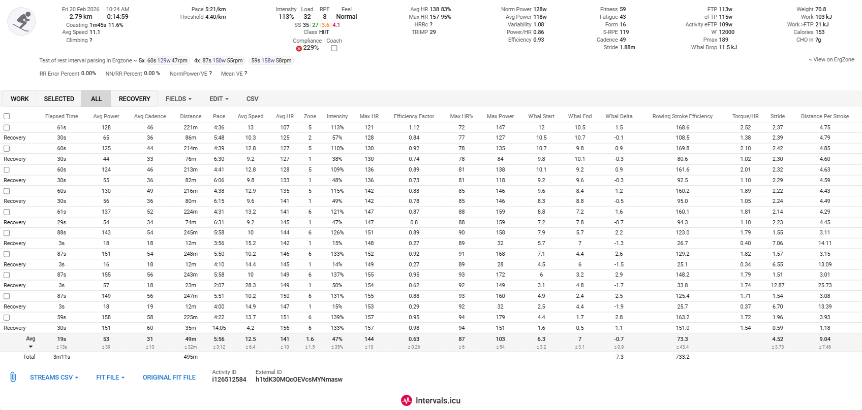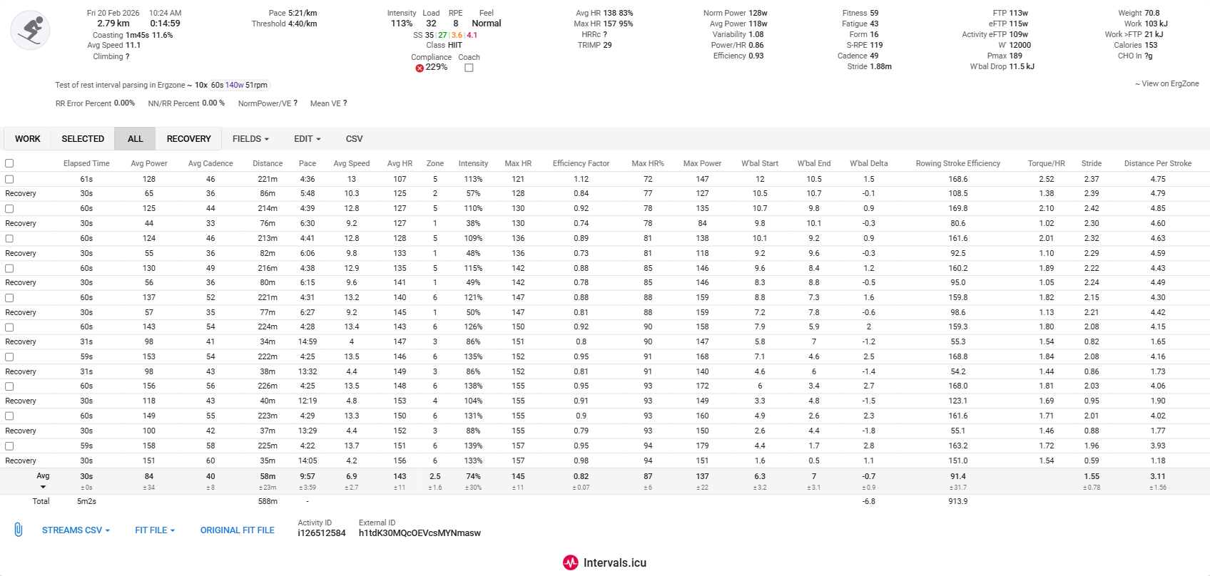 One thing I noticed: I did a 10 km session. In the .FIT file from ErgZone, Intervals.icu shows it as my best 10 km of the season.