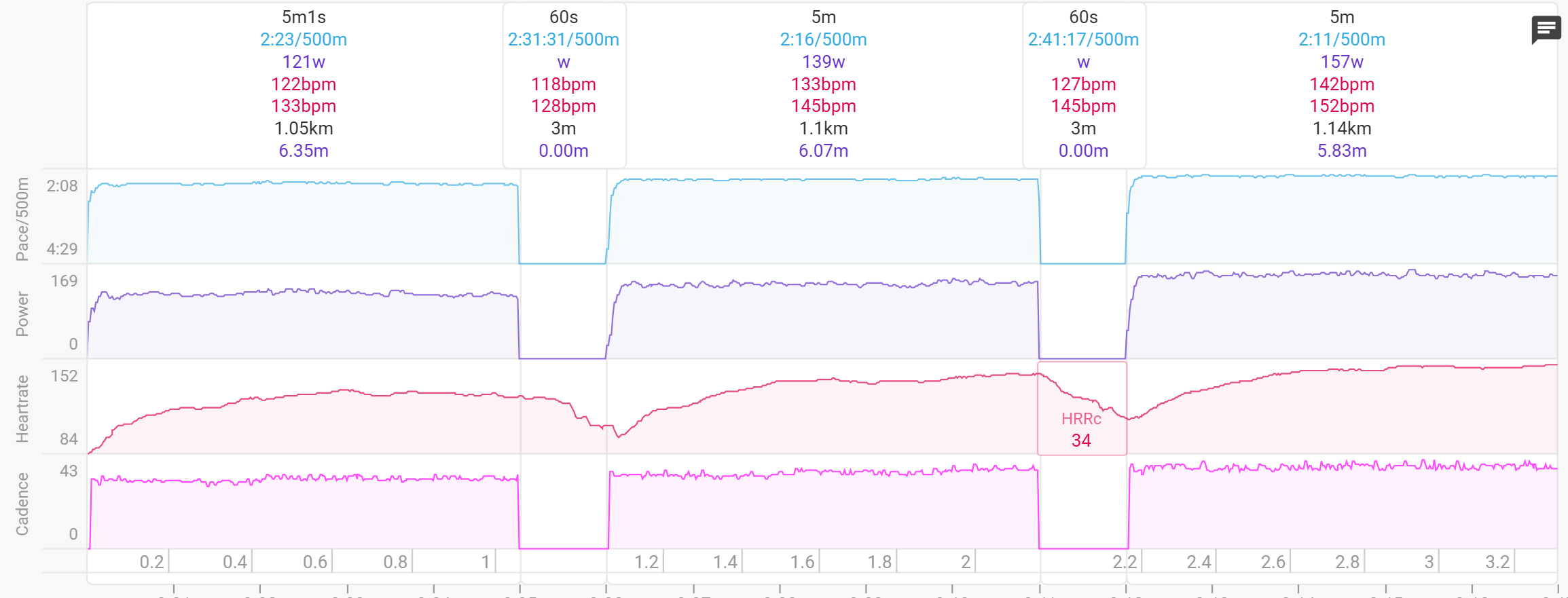 Also the last rest interval has maintained an even higher power though was actually static rest as there was not a further interval to give the lower/resting power level presumably?