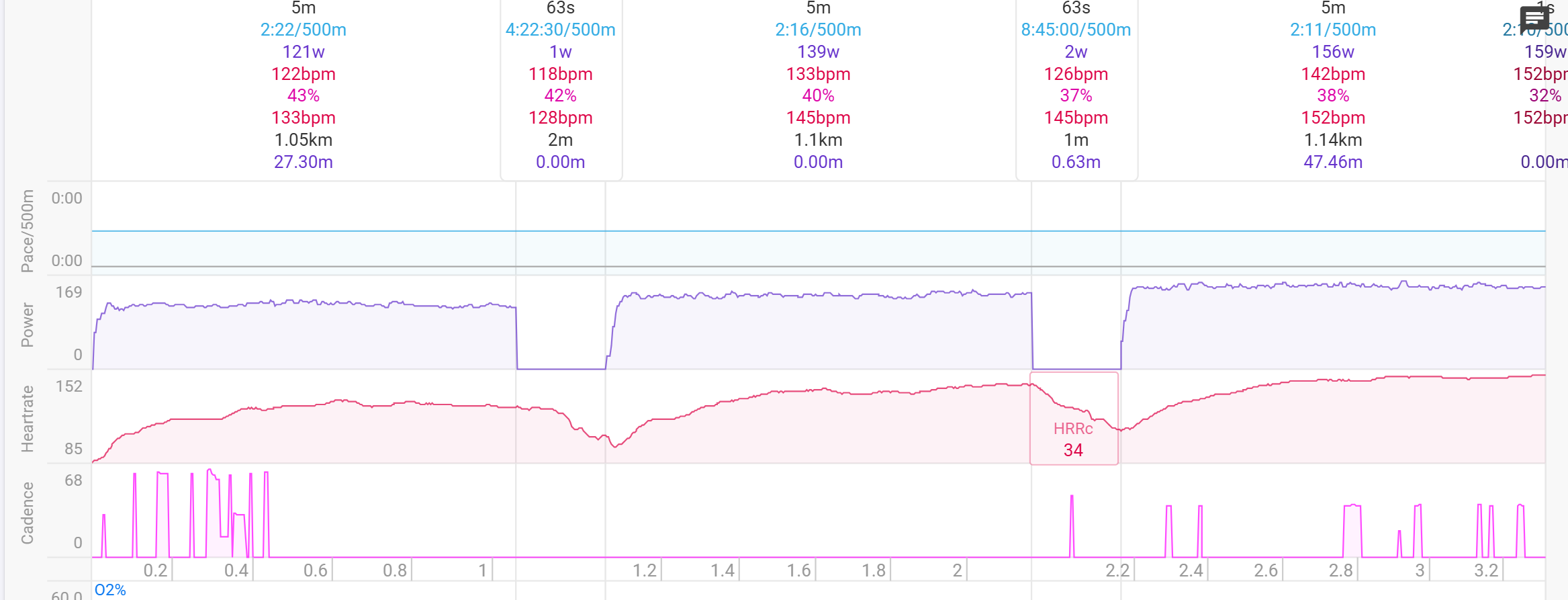 @greis. I did the intervals workout today with the first five rests as easy pulls & then the second five as static rest. The HR seems better in the easy pulls as you can make out some slight variation, whereas in the ones with static rest it seems like there was little/no recording of HR i.e. a straight line. Is that what you intended to happen?