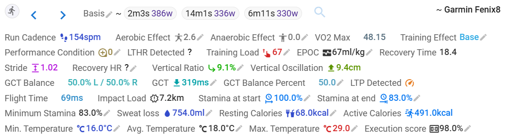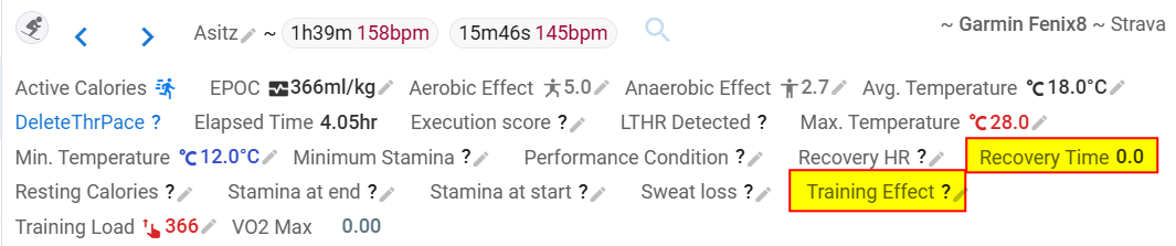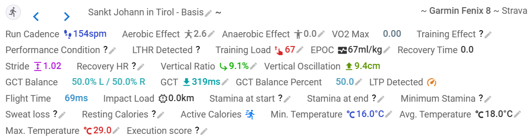 On my activities from this morning Garmin fields (from some custom fields by the community).