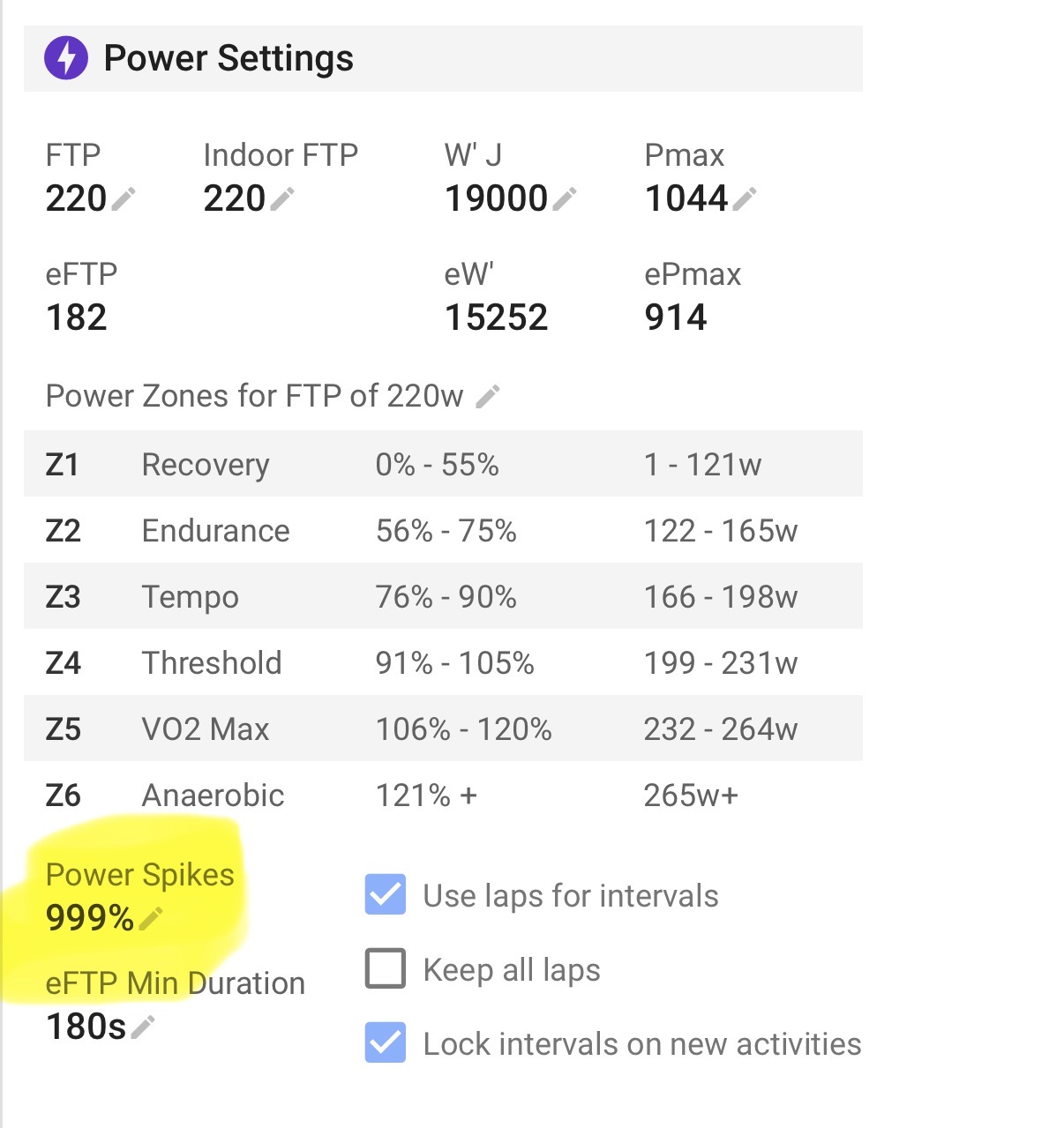 Possibly because Intervals does “power spike detection” which in my experience is wrong. So I turn it off in Intervals by setting to 999: