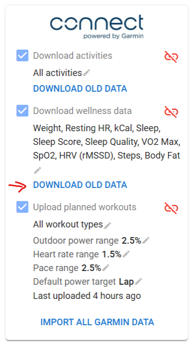 Ensuring historical data is “enabled” in Garmin Connect