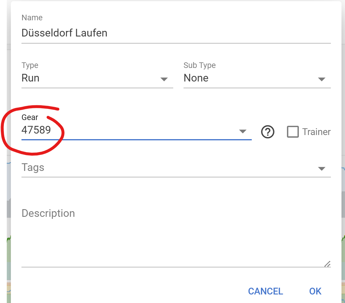 I was checking which shoes I used in a past race and i.o. getting the name of the shoe I got a number which I cannot refer to the right shoe. I think this is happening also in other fields