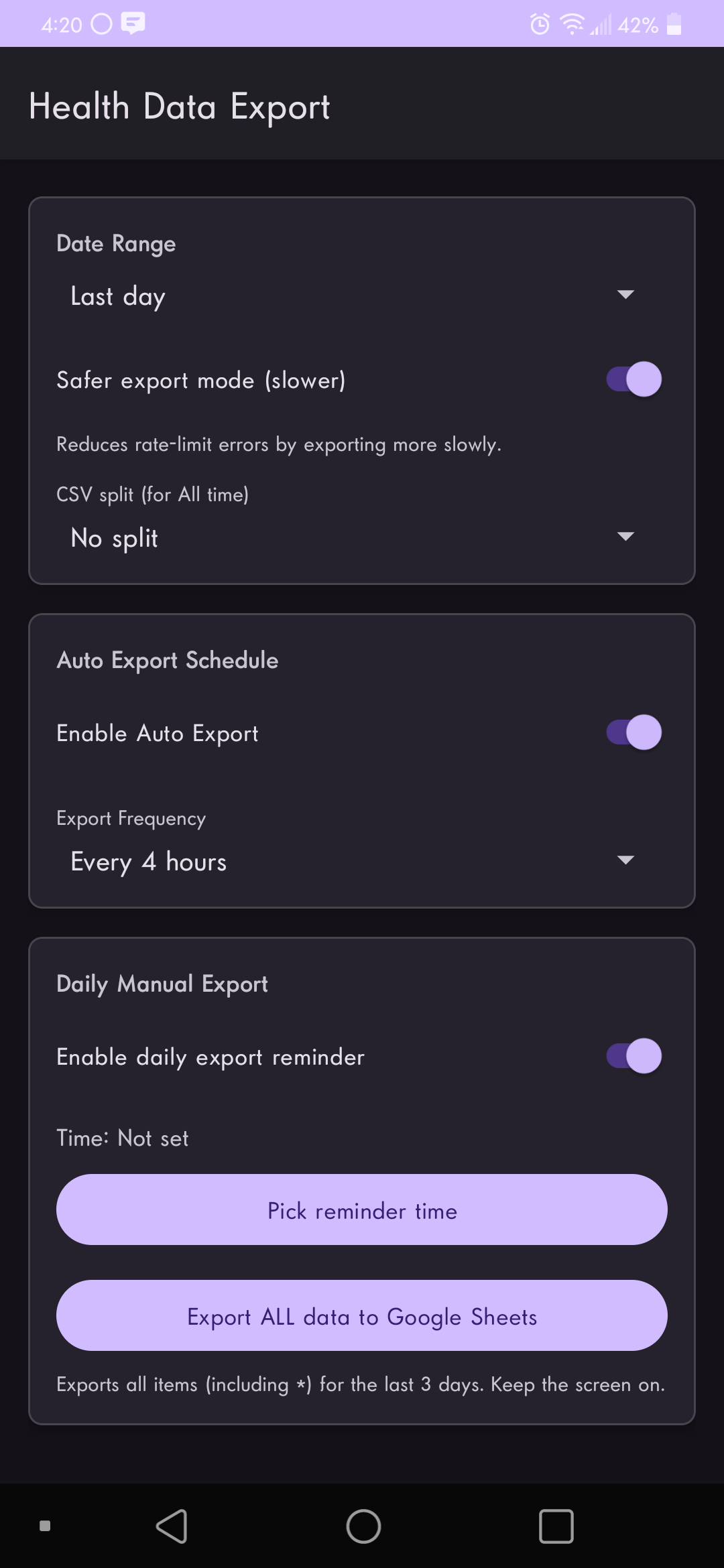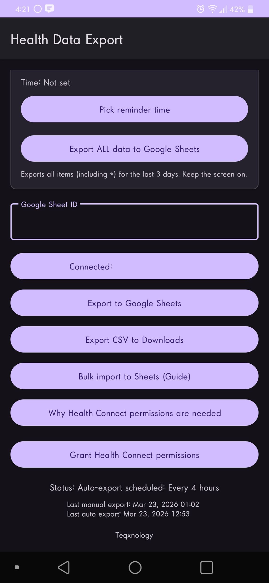 I’ve been trying to find a reliable way to get my Health Connect data out of Android and into something I can actually analyze (Google Sheets, CSV, etc.). Everything I found either didn’t work consistently, or required a paid/third‑party API.