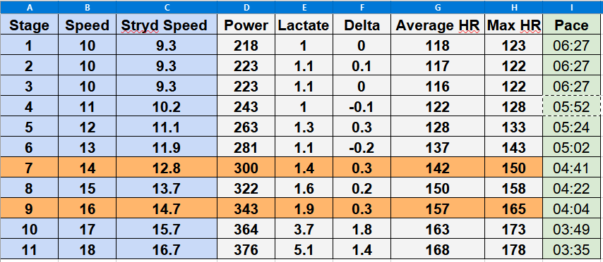 A few days later, the same athlete completed a ramp test (20w/1min increments). He failed after completing the 380-watt stage.