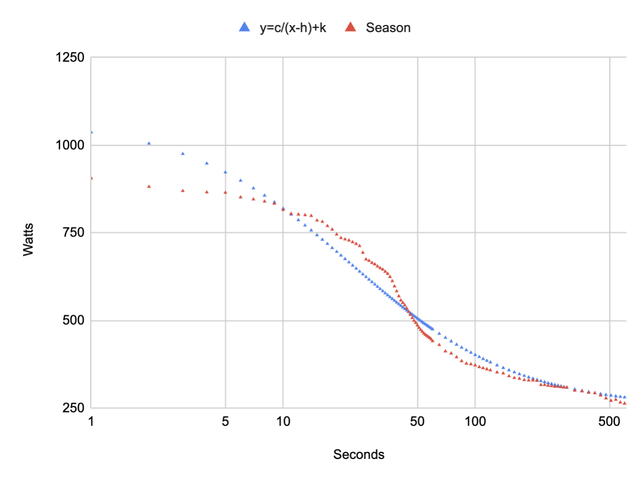 5s 1042 watts 60s 637 watts 720s 330 watts (the German plataform uses 20s, 3 min and 12 min if I remebber correctly but I do not have the data)