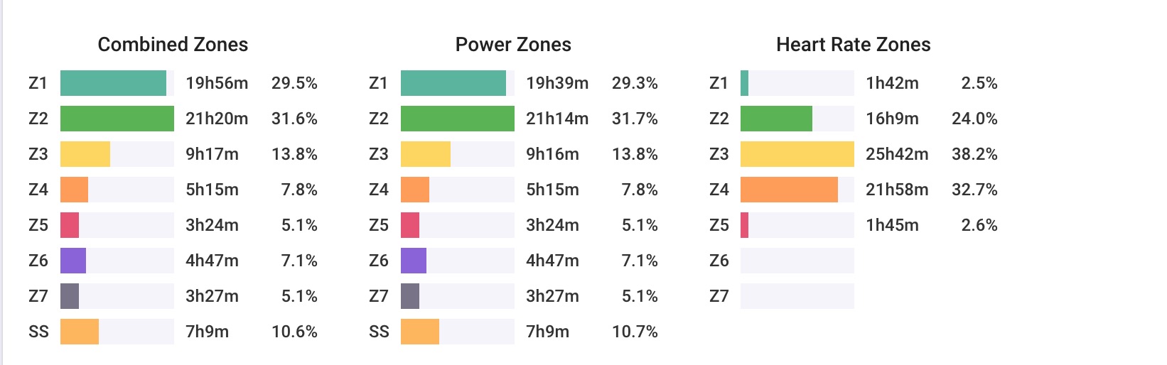 One of the biggest issues I have with my training is knowing if I’m targeting the right zone. This is easy enough on an indoor trainer, because I have a lot of control, but I live on an island which is full of short, steep hills. I’m also very heavy so I have to work hard when I hit those hills. As a result my HR says I’m mainly in Z3 and Z4 while my power zones are mainly Z1 and Z2.
