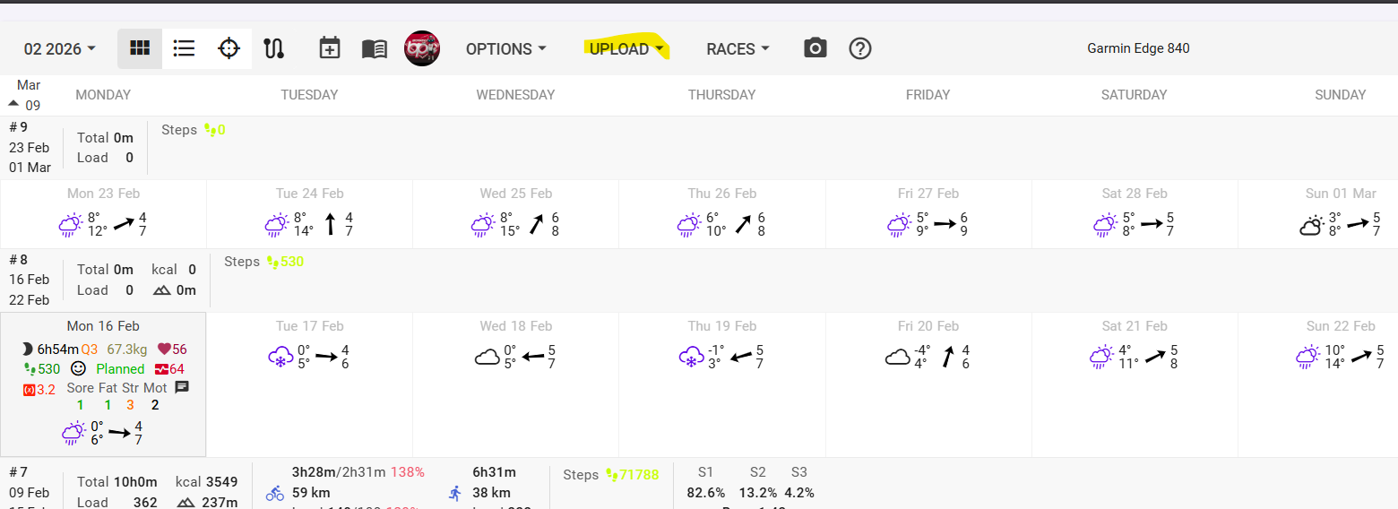 Si tu n’as pas d’entrainement planifié durant cette période de 7 jours à partir d’aujourd’hui, rien n’est envoyé.