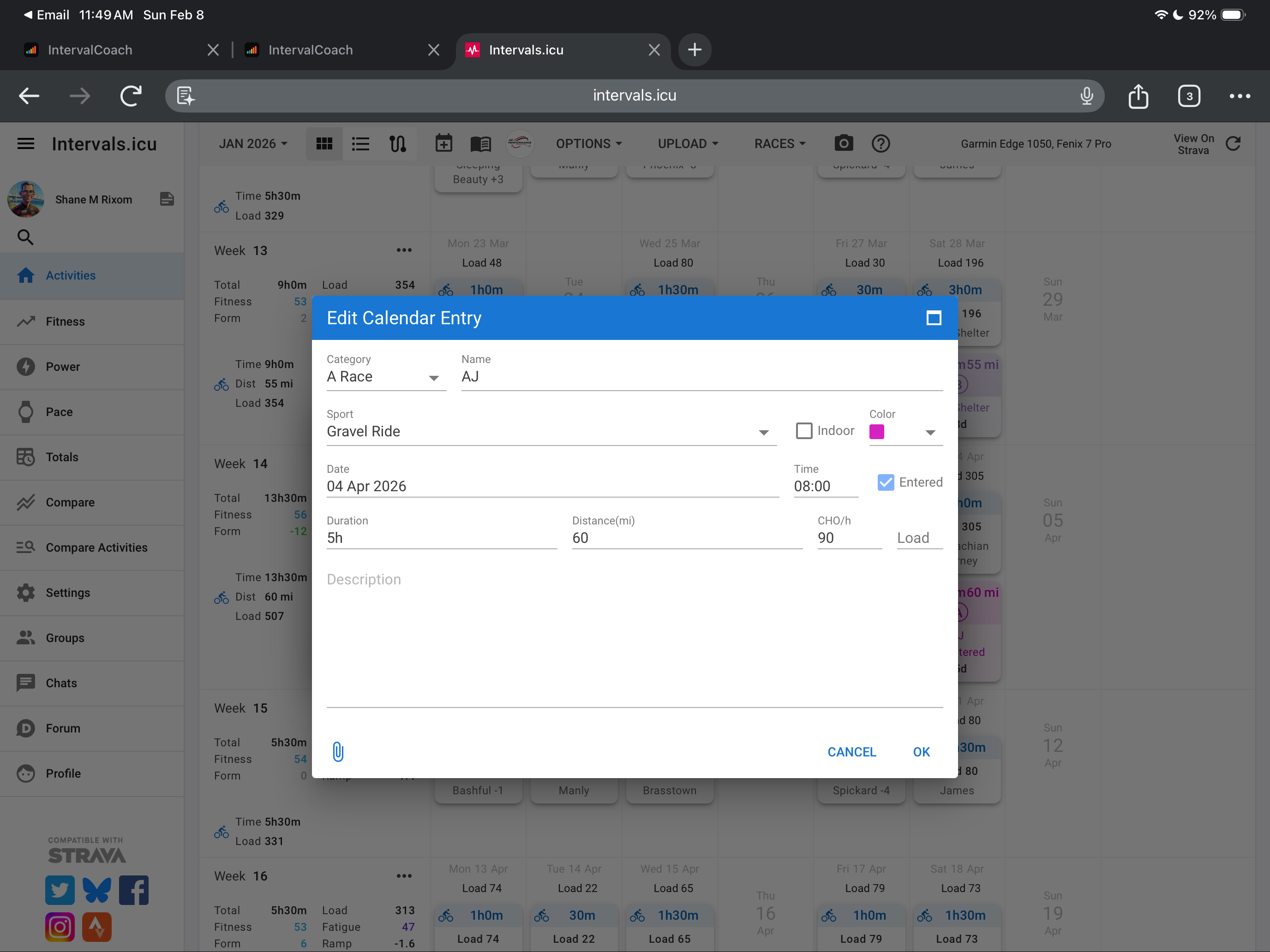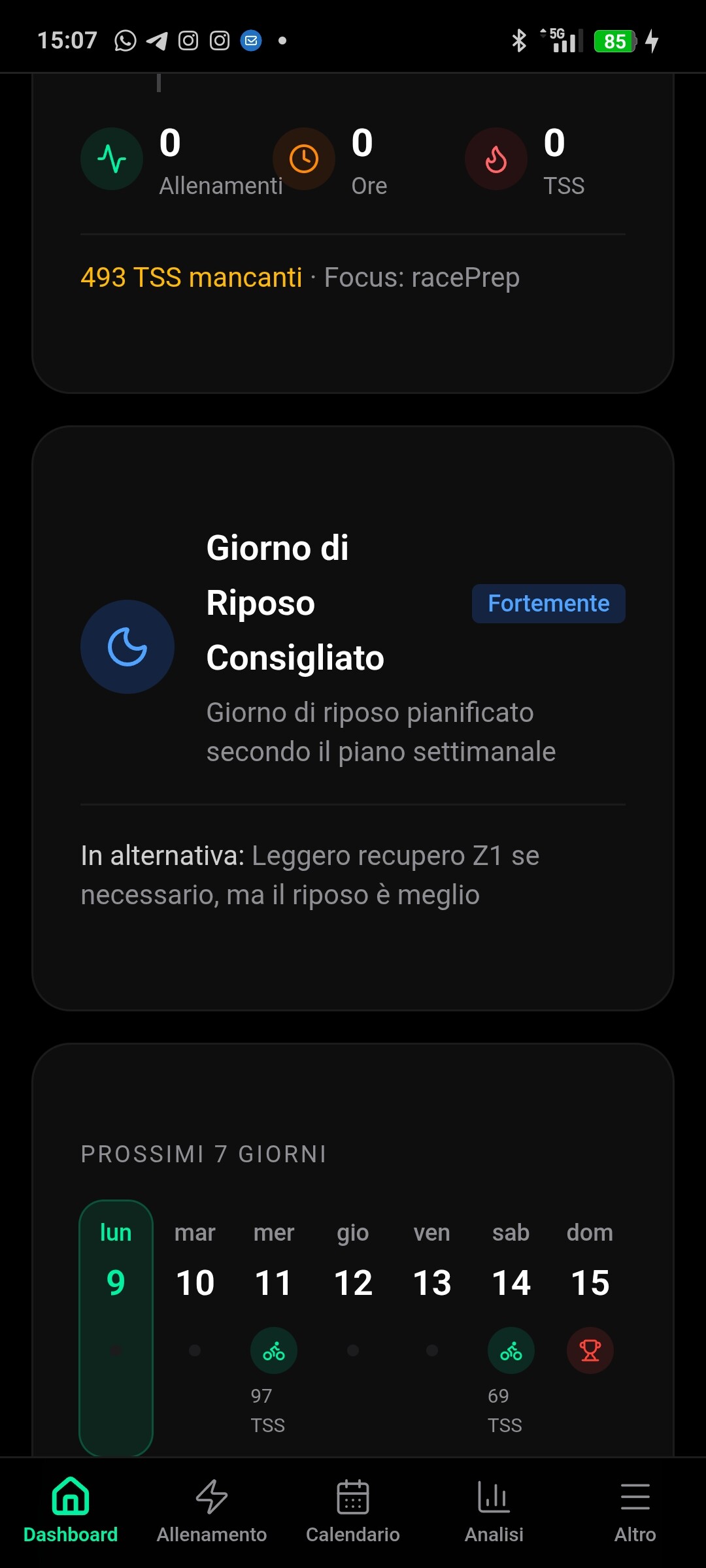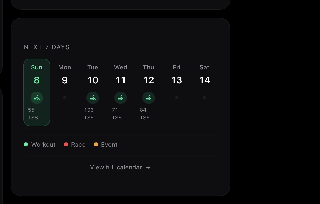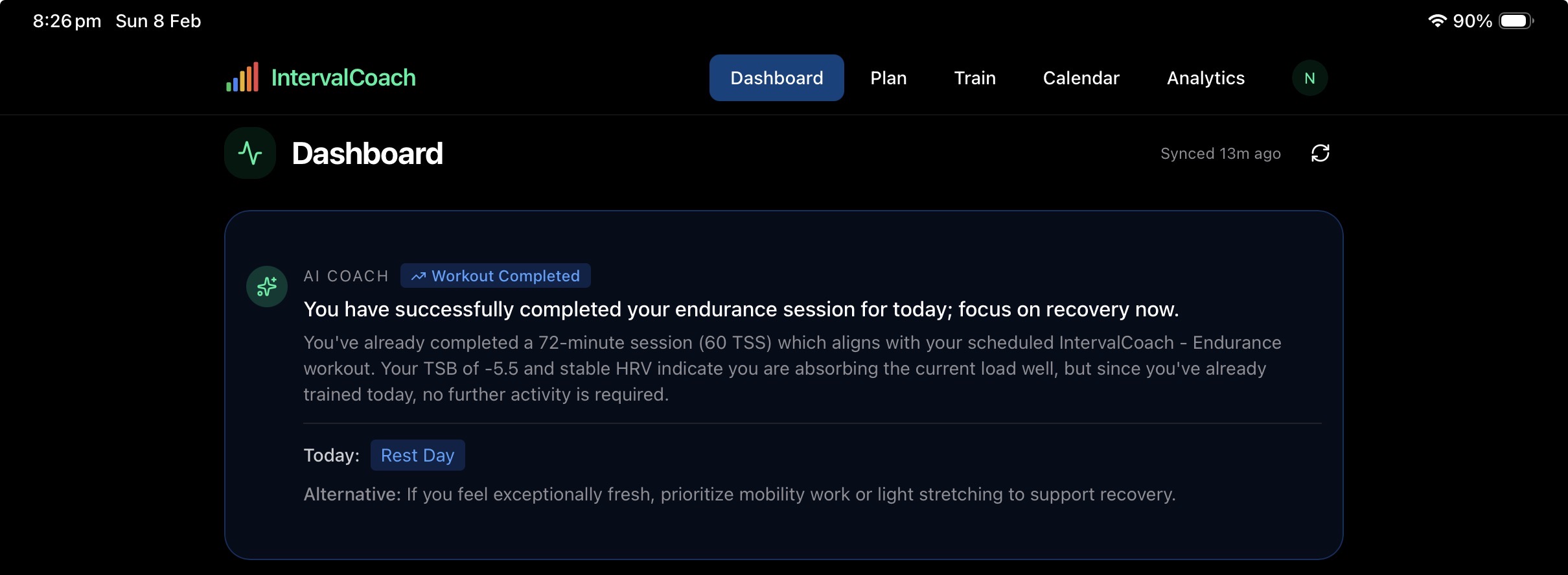 For the recent activities: the dashboard and calendar data is cached and refreshes when you load the page. After a Zwift workout syncs to Intervals.icu, there can be a short delay before it shows up. The analysis email fires faster because that’s triggered directly by the webhook. If you do a hard refresh on the dashboard it should pick up the new activity. If it still doesn’t show after a few minutes, let me know and I’ll dig deeper.