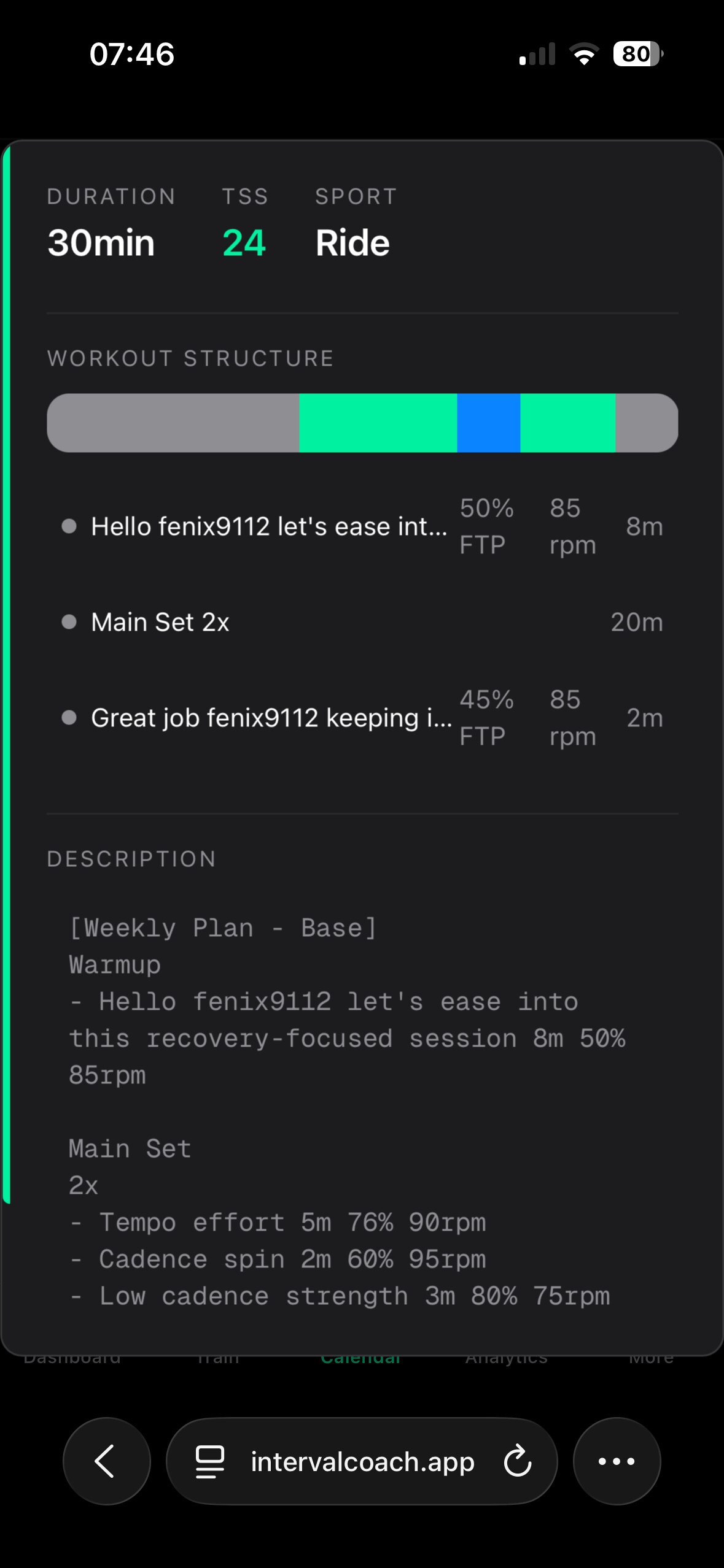 That said, the workouts don’t currently prescribe specific elevation gain targets (e.g., “1000m of climbing”). The focus is on duration, intensity, and zone targets rather than terrain profile. That’s a fair gap for trail runners, and I’ve added it to my list as a feature request.