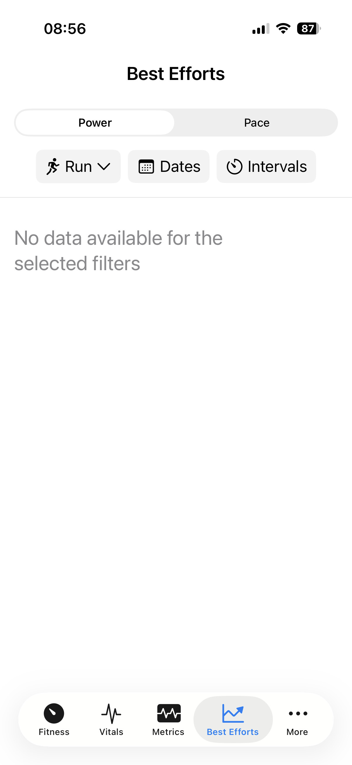 I can see best efforts for distance in your app, but not power.