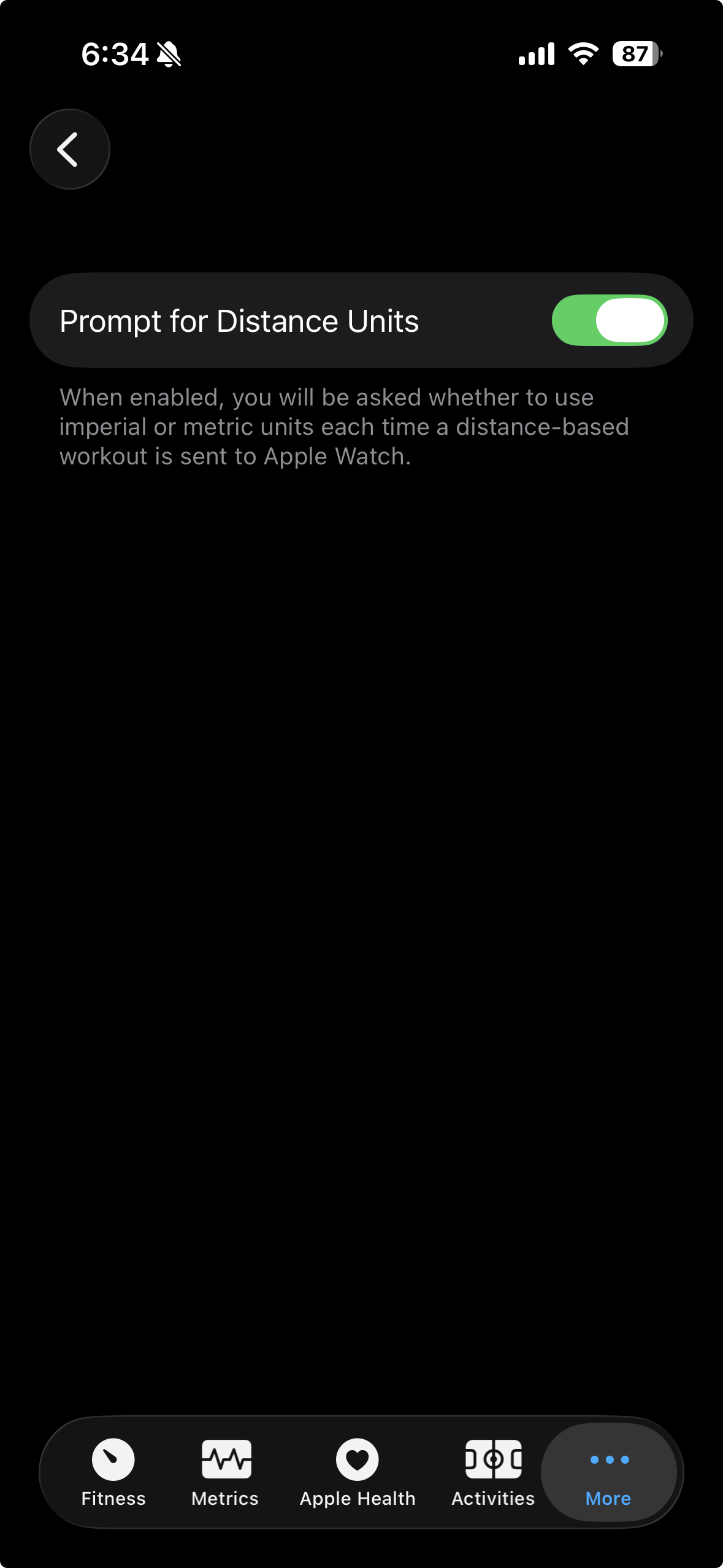 I think I will build in an option to control how this will work though. When off (the default) the user’s unit setting will be used automatically. When enabled, and if the workout contains distances, a prompt will be shown for the user to select the units for that workout.