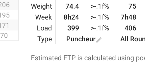 The percentage of Weight/Week/Load are not shown correctly on the power page: