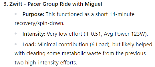 For multi event days, asking LeCoach to analyse the full day, it seems LC might have difficulties to understand the chronological order of the activities. Today, I started with 14 min warmup with Miguel, followed by a Zwift PAS race. Then finished with a workout.