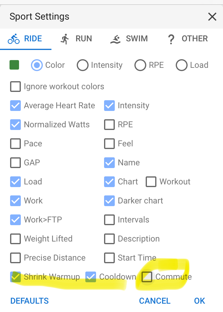 I’ve included the RUN sport settings in the screenshot. I’ve alternated the “Chart” tick and “Workout” tick. I don’t see a combination that shows the actual HR data.