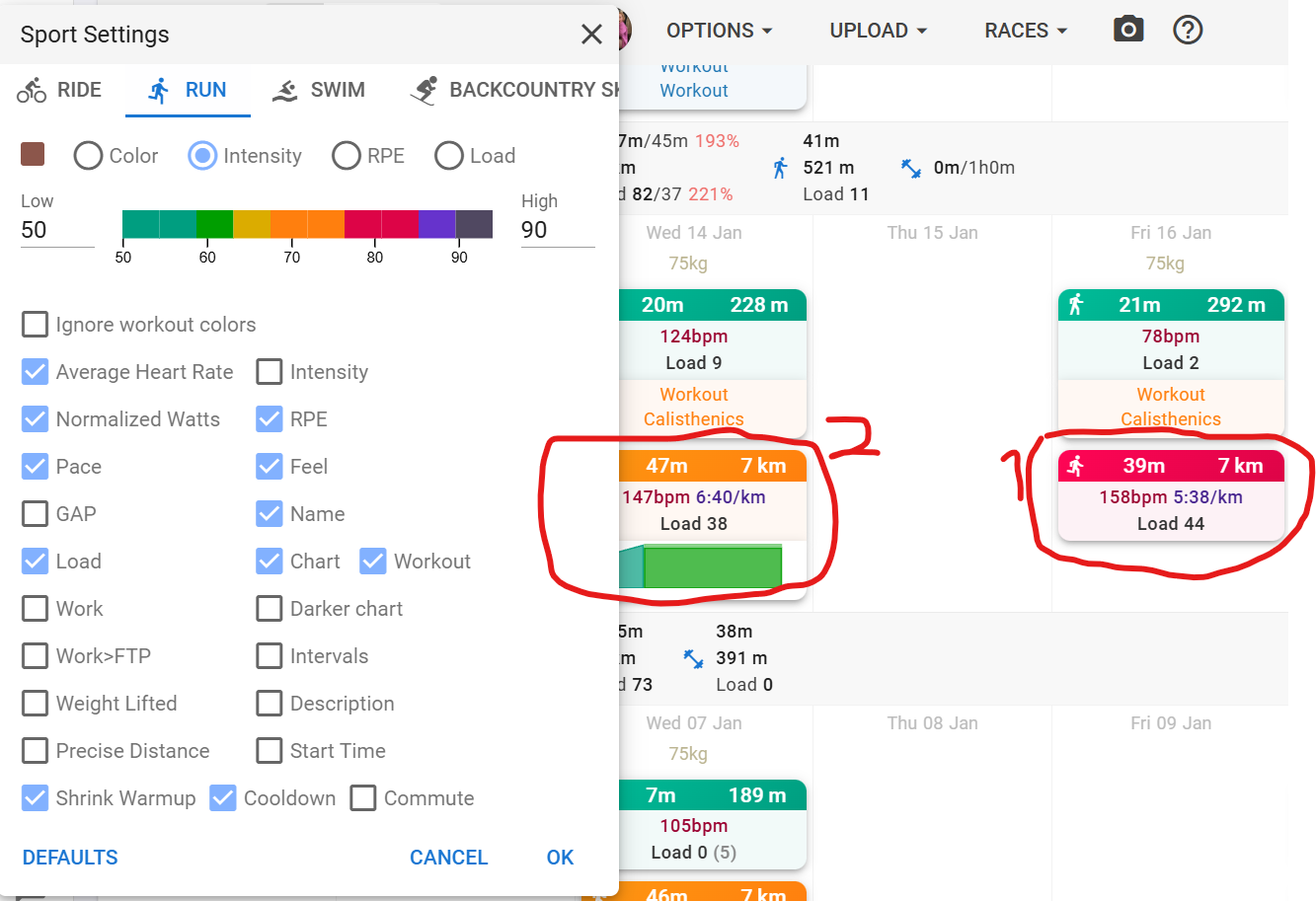 For workout highlighted as #1 there was no scheduled workout and I don’t see the actual HR. For #2 I only see the scheduled workout HR.
