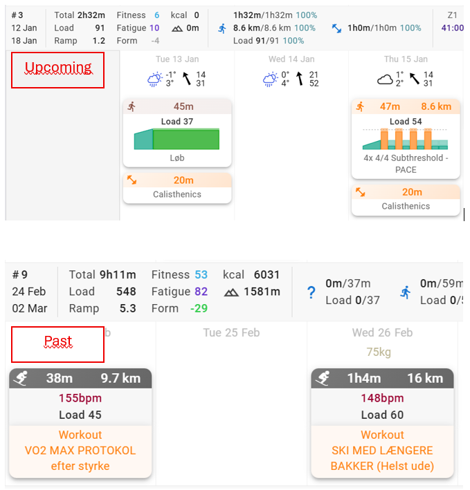 I would like to see past workouts in the format you get as default for upcoming workouts. It is the visuals for upcoming workouts I need across a timeperiod. Is it possible to adjust for all past workouts?